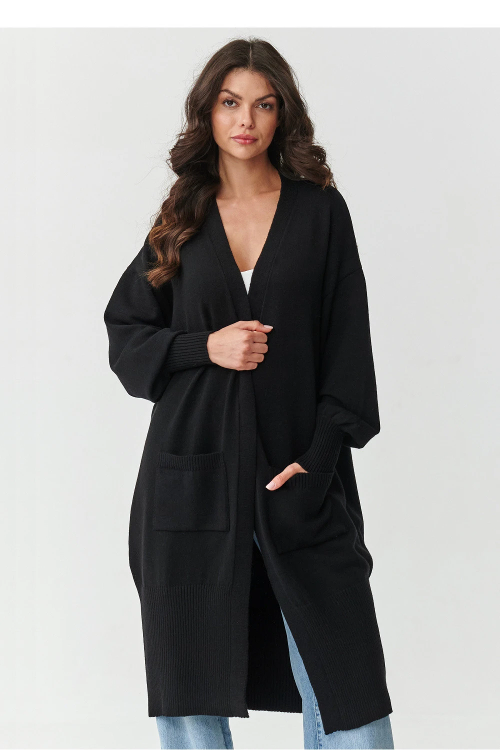 Stylový, pohodlný a nadčasový, takový je náš dlouhý dámský kardigan s kapsami, který se stane vaším oblíbeným kouskem šatníku na chladnější dny. Vyrobený z vysoce kvalitní příze kombinuje měkkost, odolnost a pružnost, díky čemuž se skvěle přizpůsobuje postavě a poskytuje pohodlí po celý den. Dlouhý střih bez zapínání decentně zjemňuje siluetu, a hluboké kapsy vpředu mu dodávají jak funkčnost, tak volný charakter. Široké lemky na rukávech a dole dodávají celku moderní dokončení a zajišťují, že kardigan skvěle padne při pohybu. Tento model můžete nosit na mnoho příležitostí, hodí se do každodenních stylizací s džíny a tričkem, jako náhrada za elegantní šaty, nebo v kancelářských kombinacích jako pohodlná alternativa k saku. Bez ohledu na to, zda si vyberete klasickou černou, módní pískovou barvu nebo čokoládovou, vždy budete vypadat stylově a cítit se pohodlně. Pokud hledáte univerzální oversized kardigan, který kombinuje módní design s praktickým použitím, tento model bude skvělou volbou na podzim a zimu.
