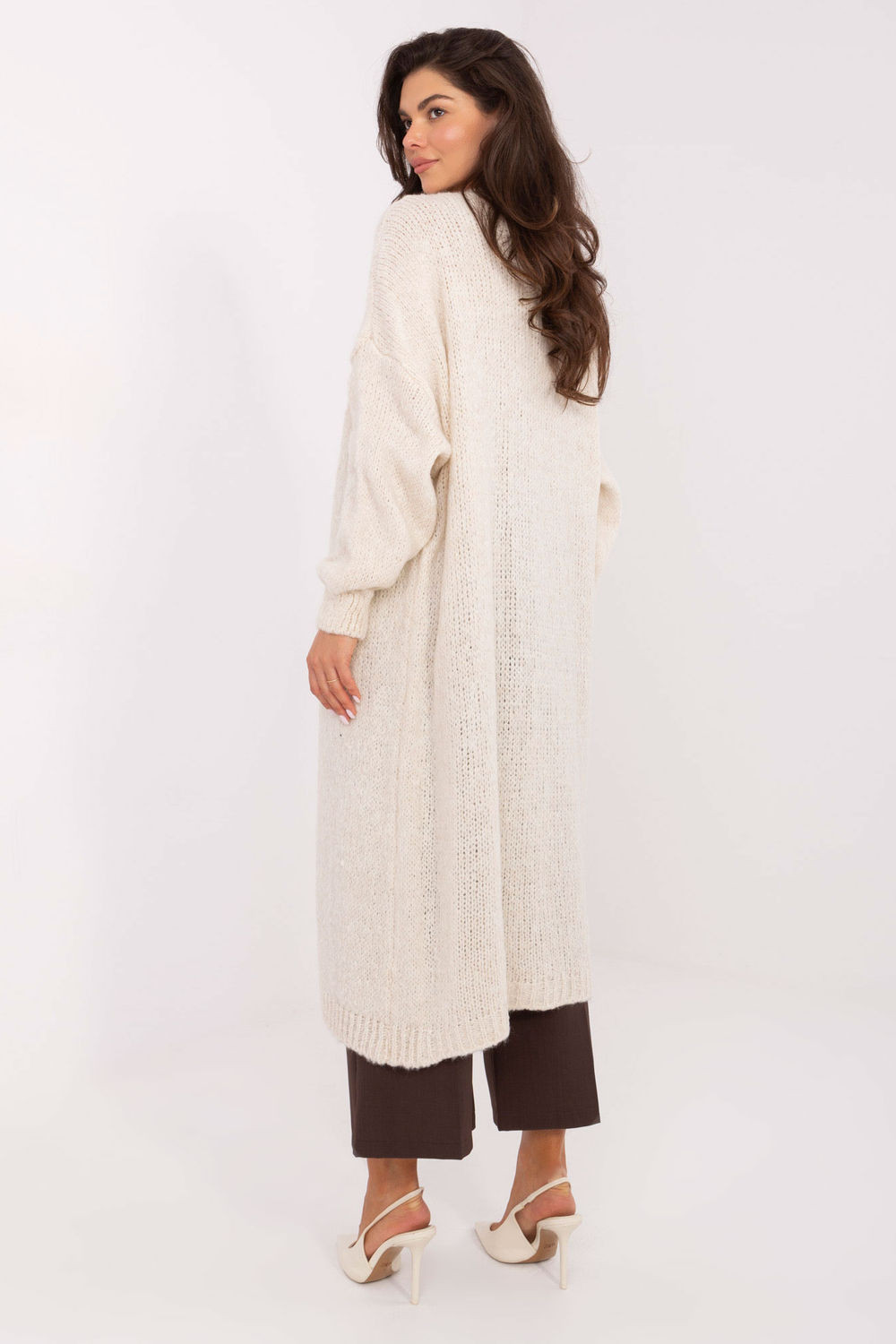 Dlouhý dámský kardigan v casual stylu, ideální na každý den i do práce. Vyroben z měkké a příjemné směsi polyakrylu, polyamidu, vlny a viskózy, poskytuje pohodlí po celý den. Model bez zapínání, po kolena, s dlouhými rukávy a praktickými kapsami, kombinuje eleganci s funkcionalitou. Hladká textura materiálu umožňuje snadné kombinování kardiganu s různými stylizacemi, vytvářející pohodlné a stylové outfity.