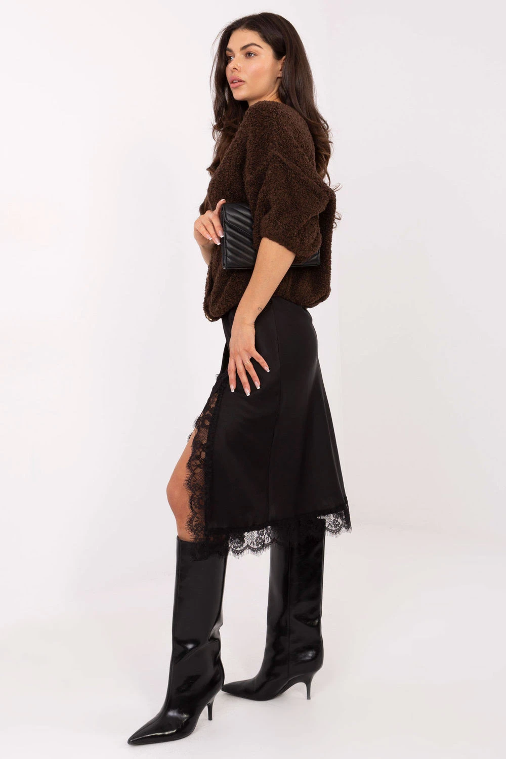 Světlý dámský svetr s volným střihem je elegantním návrhem ideálním na každý den i do práce. Vyrobený z příjemné na dotek pleteniny s různorodou fakturou materiálu, z kombinace akrylu, polyamidu, vlny a viskózy, poskytuje pohodlí a teplo po celý den. Standardní délka a 3/4 rukávy mu dodávají lehkost, a kulatý výstřih jemně zdůrazňuje krk. Svetr se zapíná na knoflíky, co mu dodává klasický, ženský charakter. Skvěle se hodí jak do elegantních kancelářských stylizací, tak do každodenních outfitů s džínami nebo sukní.