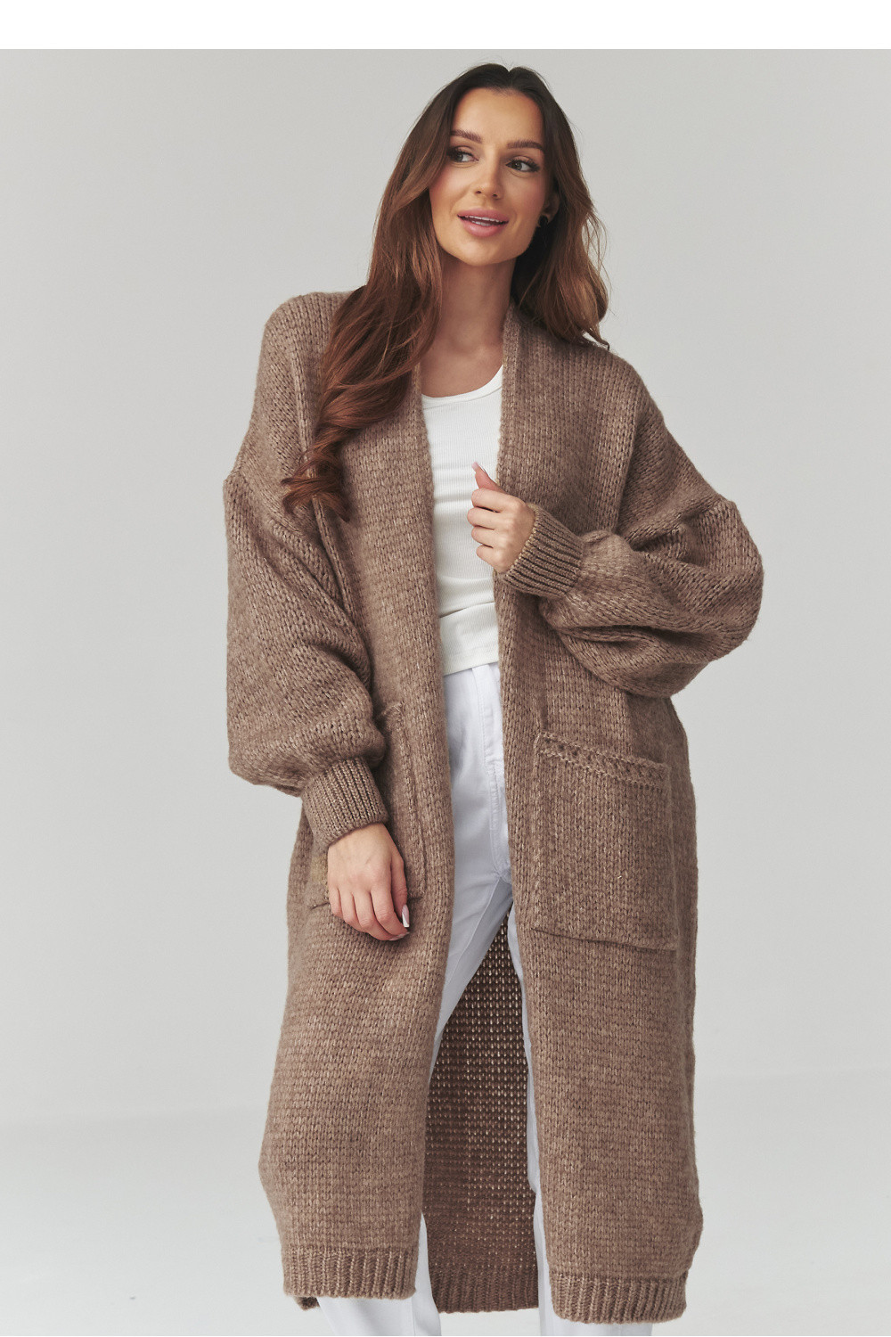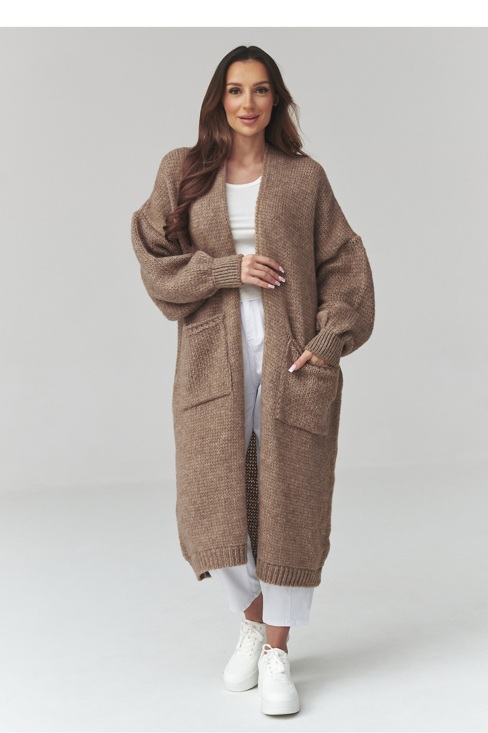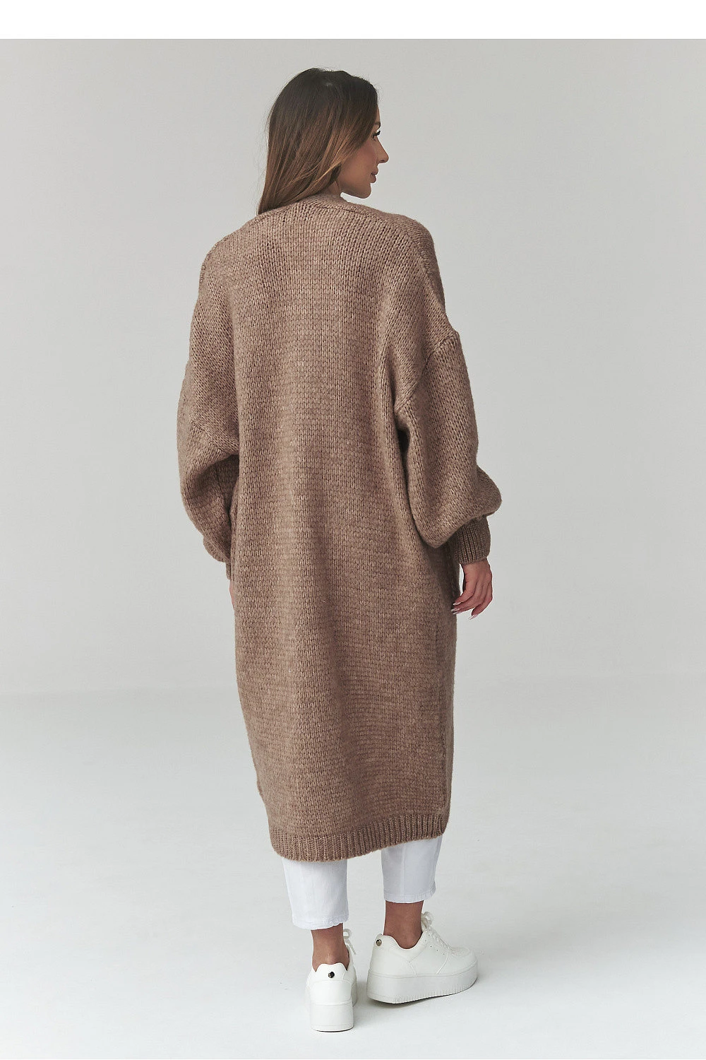Tento dlouhý dámský svetr je ideální kombinací pohodlí, módního vzhledu a funkčnosti. Model ve formě oversize kardiganu se skvěle hodí do každodenních stylizací, poskytující volnost pohybu a příjemný pocit zabalení. Volný střih zajišťuje, že oversize svetr se skvěle drží na postavě a hodí se k mnoha kouskům šatníku. Vyrobena z příjemné na dotek pleteniny, dlouhý dámský kardigan vyniká pečlivým provedením a moderním minimalistickým designem. Praktické velké kapsy zvyšují funkčnost a delší střih z něj činí ideální volbu jako teplý svetr na každý den. Tento módní dámský svetr skvěle ladí jak s kalhotami, tak s legíny nebo šaty. Díky univerzálnímu střihu se hodí jako součást casual, městských i elegantních stylizací. Dámský kardigan je skvělou volbou pro ženy, které oceňují pohodlí, styl a nadčasovou módu.