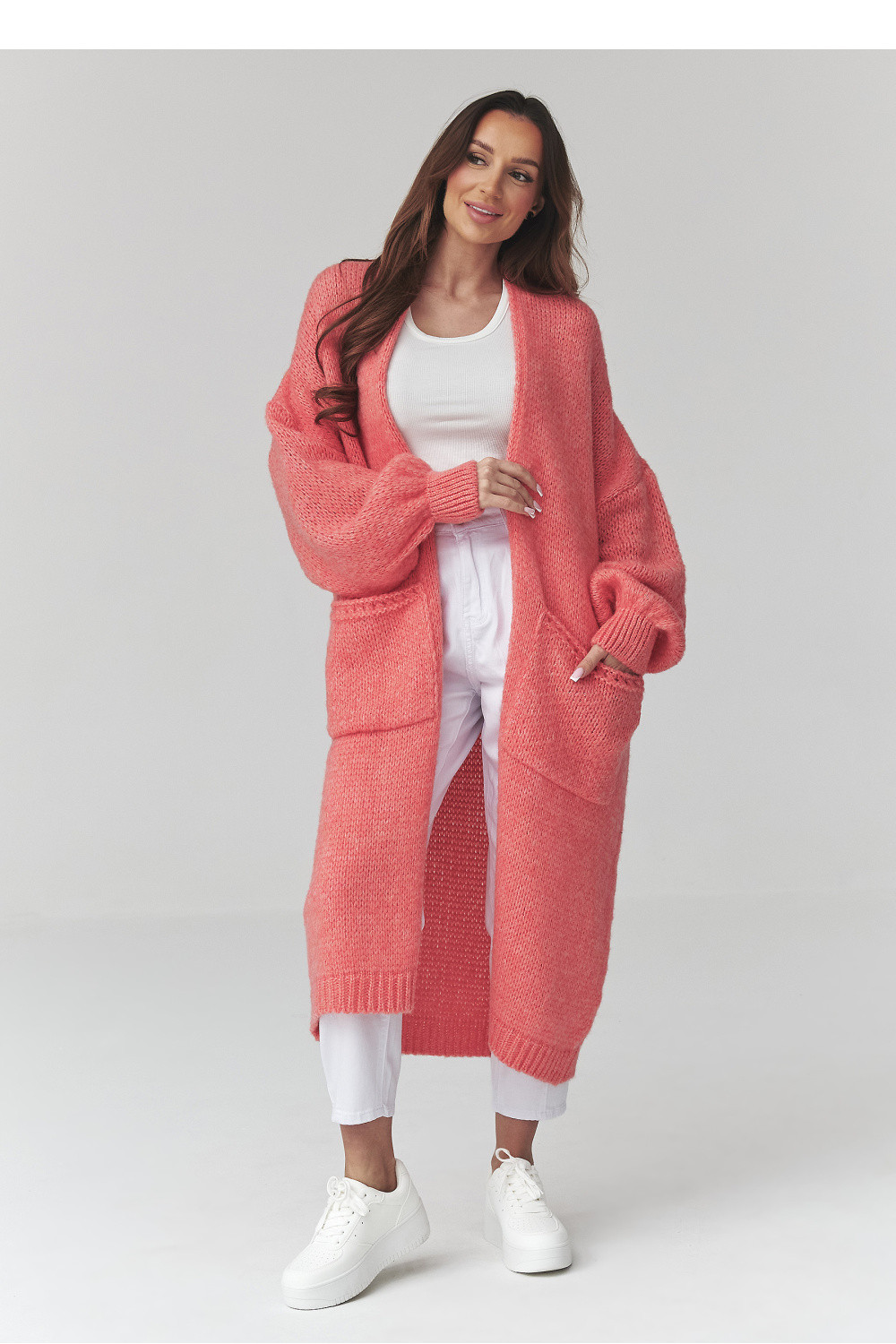 Tento dlouhý dámský svetr je ideální kombinací pohodlí, módního vzhledu a funkčnosti. Model ve formě oversized kardiganu se skvěle hodí do každodenního outfitu, poskytující volnost pohybu a příjemný pocit obalení. Volný střih zajišťuje, že oversized svetr se skvěle přizpůsobí postavě a hodí se k mnoha kouskům šatníku. Vyrobený z příjemné na dotek pleteniny se dlouhý dámský kardigan vyznačuje pečlivým provedením a moderním, minimalistickým designem. Praktické velké kapsy zvyšují funkčnost a delší střih zase z něj činí ideální teplý svetr na každý den. Tento módní dámský svetr se skvěle hodí jak k kalhotám, tak k legínám nebo šatům. Díky univerzálnímu střihu se hodí jako prvek do casual, městských i elegantních outfitů. Dámský kardigan je skvělou volbou pro ženy, které ocení pohodlí, styl a nadčasovou módu.