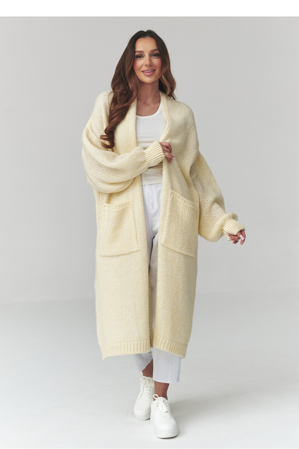 Tento dlouhý dámský svetr je ideální kombinací pohodlí, módního vzhledu a funkčnosti. Model ve formě oversized kardiganu se skvěle hodí do každodenních stylizací, poskytující volnost pohybu a příjemný pocit zabalení. Volný střih zajišťuje, že oversized svetr skvěle padne na postavu a hodí se k mnoha kouskům šatníku. Vyrobený z příjemné na dotek pleteniny, dlouhý dámský kardigan se vyznačuje pečlivým provedením a moderním, minimalistickým designem. Praktické velké kapsy zvyšují funkčnost a delší střih zase zajišťuje, že tento model je ideální jako teplý svetr na každý den. Tento módní dámský svetr skvěle ladí jak s kalhotami, tak s legínami nebo šaty. Díky univerzálnímu střihu se hodí jako prvek do casual, městských i elegantních stylizací. Dámský kardigan je skvělou volbou pro ženy, které ocení pohodlí, styl a nadčasovou módu.