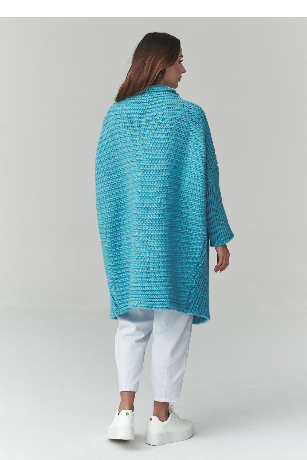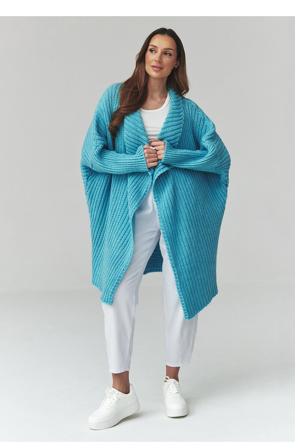 Tento dlouhý dámský svetr je skvělou volbou pro ženy, které ocení pohodlí, styl a nadčasový design. Model ve formě dámského kardiganu se vyznačuje volným střihem, díky čemuž se skvěle přizpůsobuje postavě a poskytuje plnou volnost pohybu. Moderní oversized svetr se skvěle hodí jak do každodenních outfitů, tak do elegantních kombinací. Vyrobený z příjemné pleteniny dámský kardigan zaručuje pohodlí a dostatečné zakrytí v chladnějších dnech. Charakteristický vzor materiálu mu dodává výjimečný vzhled a delší střih zase zajišťuje, že dlouhý oversized svetr skvěle ladí s kalhotami, legíny nebo šaty. Univerzální dámský svetr na každý den lze snadno sladit s mnoha stylizacemi, od volnočasových až po městské. Je to ideální kousek do šatníku pro ženy, které hledají módní kardigan, který spojuje pohodlí a styl.