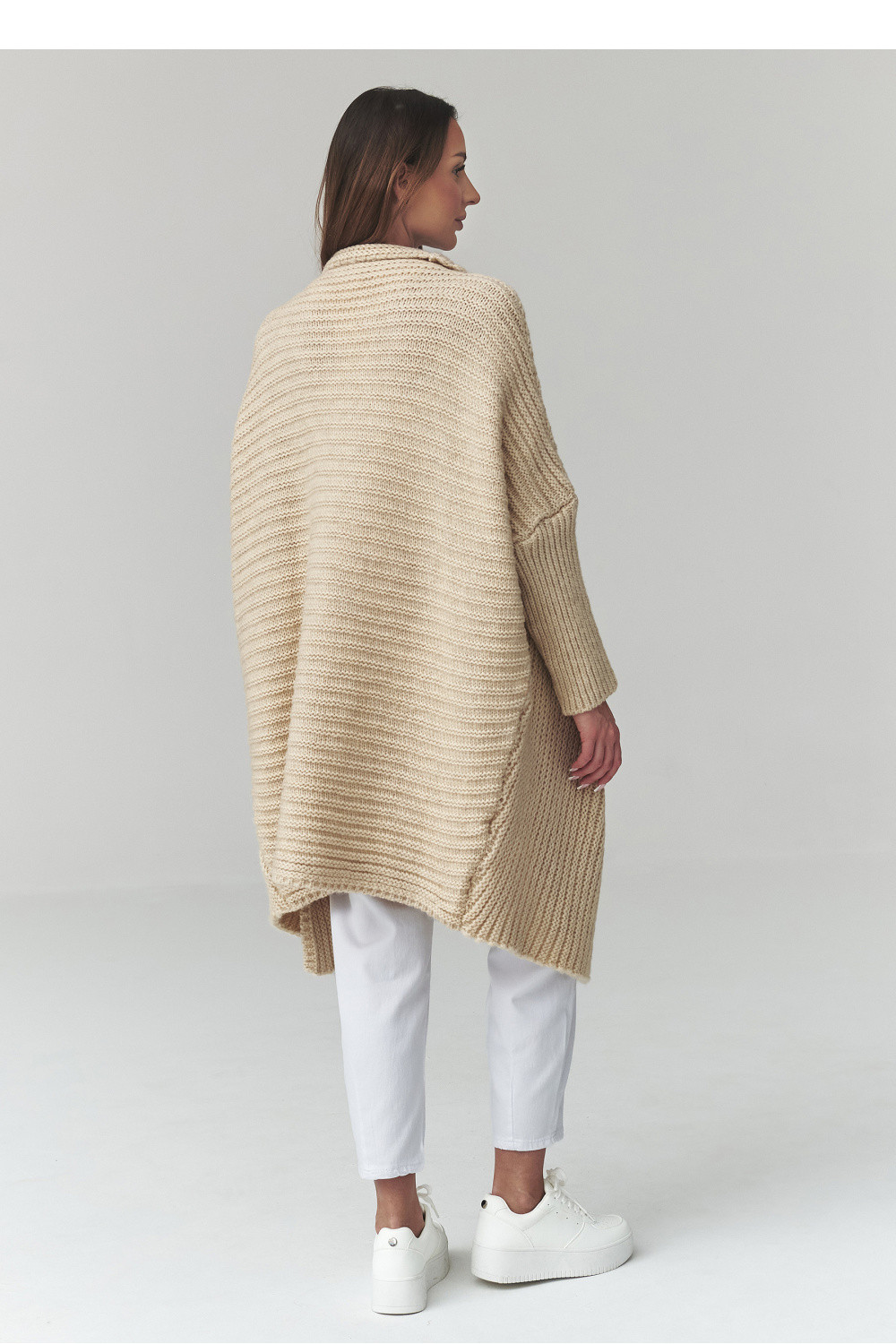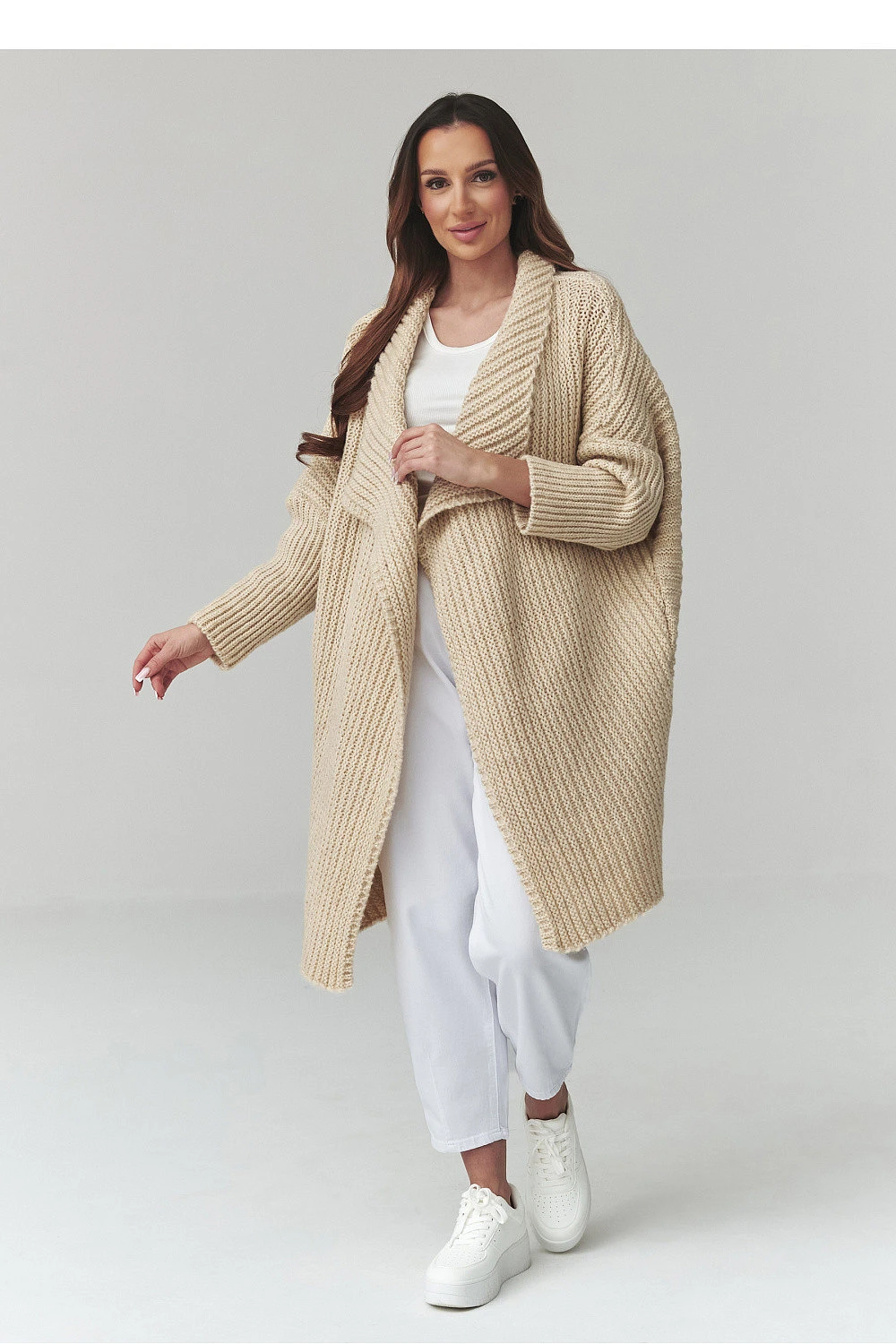Ten dlouhý dámský svetr je skvělou volbou pro ženy, které ocení pohodlí, styl a nadčasový design. Model ve formě dámského kardiganu se vyznačuje volným střihem, díky čemuž se skvěle přizpůsobí postavě a poskytuje plnou volnost pohybu. Trendový oversize svetr se skvěle hodí jak do každodenních stylizací, tak do elegantnějších kombinací. Vyrobený z příjemné materiálu dotýkající se kůže, dámský kardigan zajišťuje pohodlí nošení a správné zahřátí v chladnějších dnech. Charakteristický vzor materiálu mu dodává výjimečný vzhled a delší střih zase zajišťuje, že dlouhý oversize svetr skvěle ladí s kalhotami, legíny nebo šaty. Univerzální dámský svetr na každý den lze snadno sladit s mnoha stylizacemi, od ležérních po městské. Je to ideální kousek do šatníku pro ženy, které hledají módní kardigan, který kombinuje pohodlí a styl.
