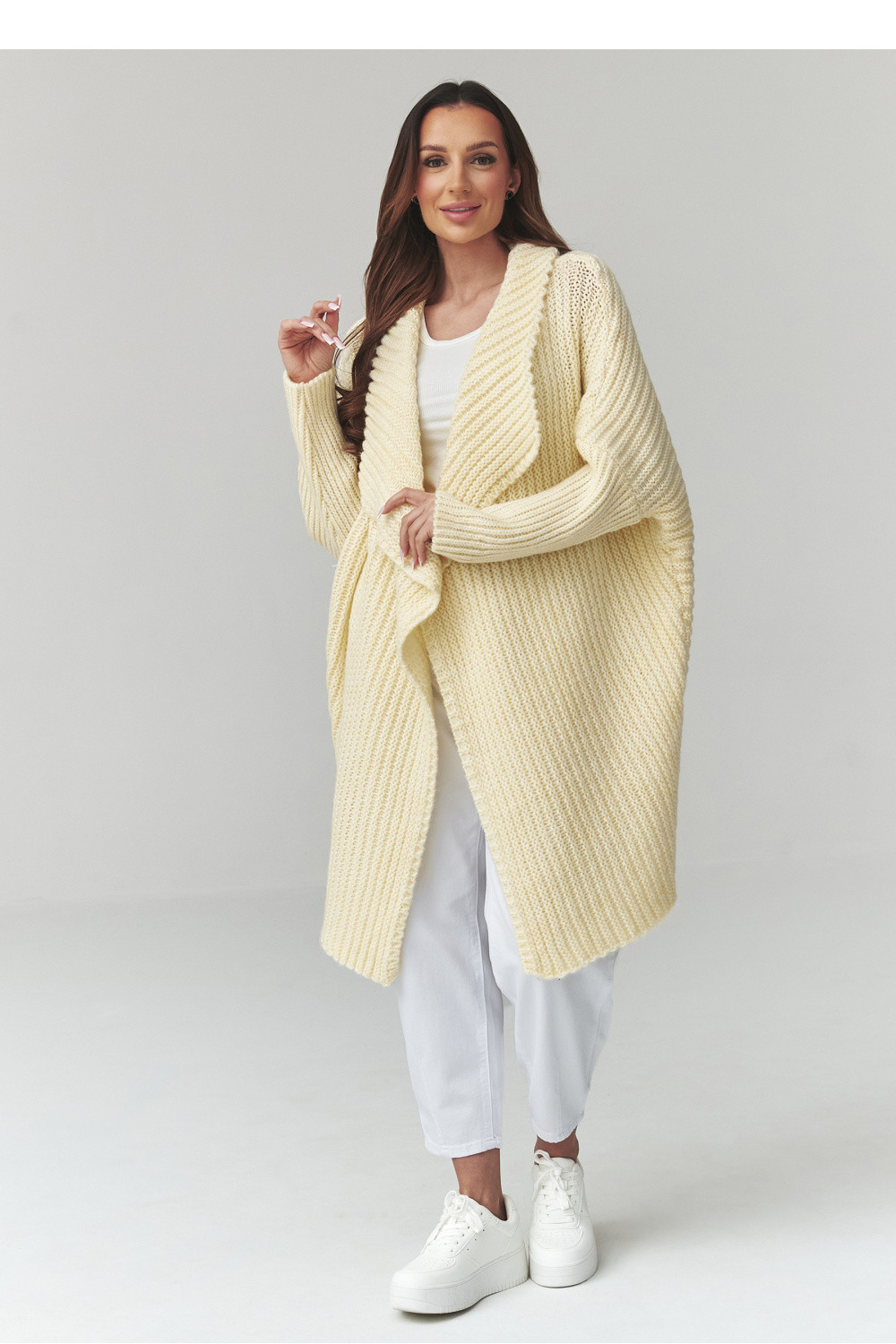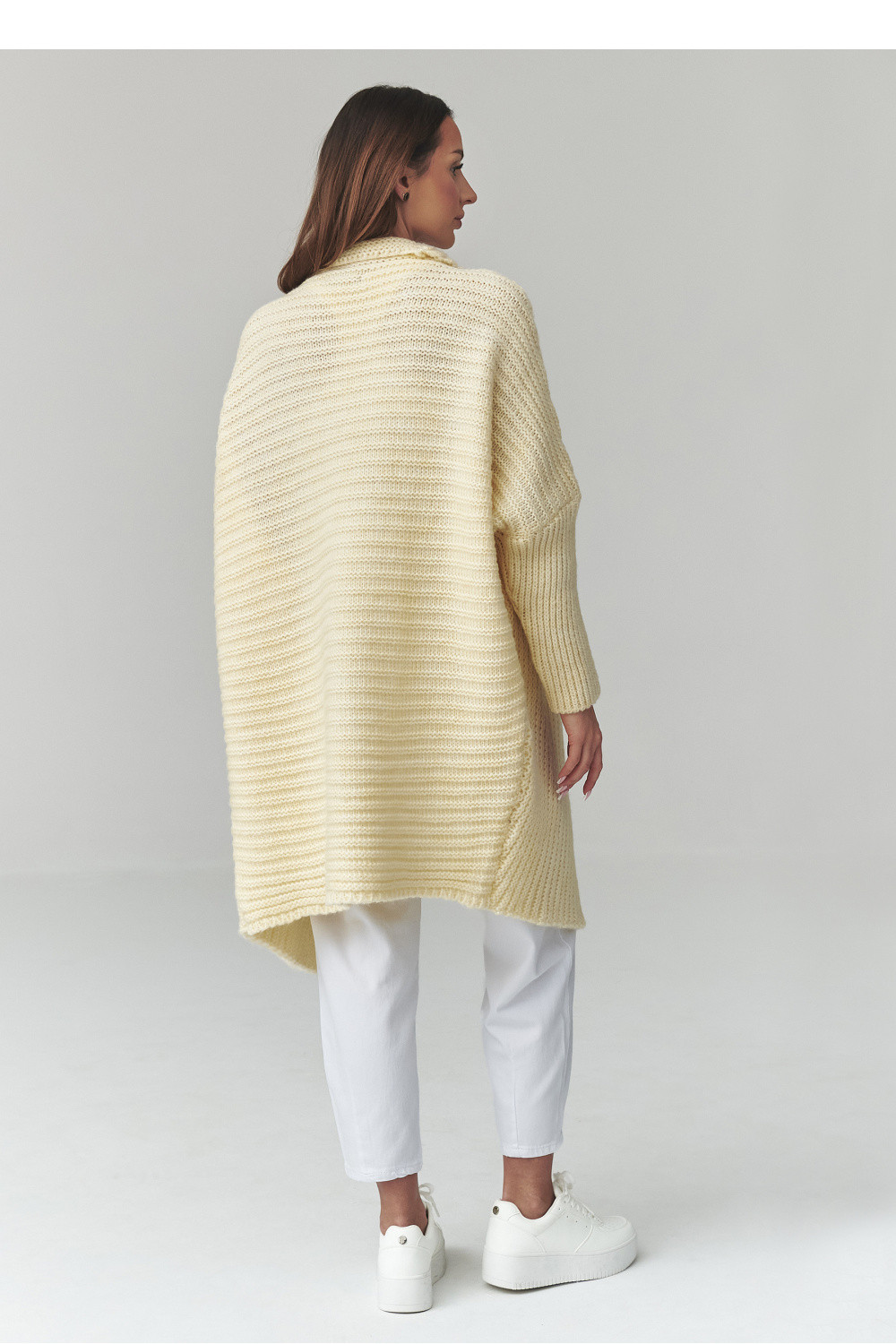 Tento dlouhý dámský svetr je skvělou volbou pro ženy, které ocení pohodlí, styl a nadčasový design. Model ve formě kardiganu se vyznačuje volným střihem, díky čemuž se skvěle přizpůsobuje postavě a poskytuje plnou volnost pohybu. Moderní oversized svetr se skvěle hodí jak do každodenních outfitů, tak do elegantnějších kombinací. Vyrobený z příjemné pleteniny kardigan dámský zajišťuje pohodlí nošení a dostatečné zahřátí v chladnějších dnech. Charakteristický materiálový vzor mu dodává unikátní vzhled a delší střih zase zajišťuje, že dlouhý oversized svetr skvěle ladí s kalhotami, legíny nebo šaty. Univerzální dámský svetr na každý den lze snadno sladit s mnoha styly, od volnočasových po městské. Je to ideální kousek do šatníku pro ženy, které hledají módní kardigan, který spojuje pohodlí a styl.