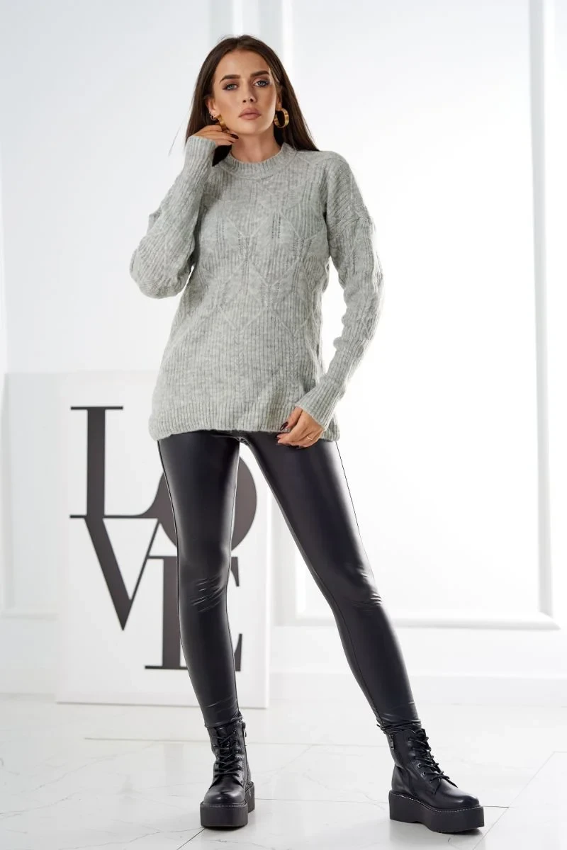Svetr model 18970343 přes hlavu s módní vazbou šedý - K-Fashion