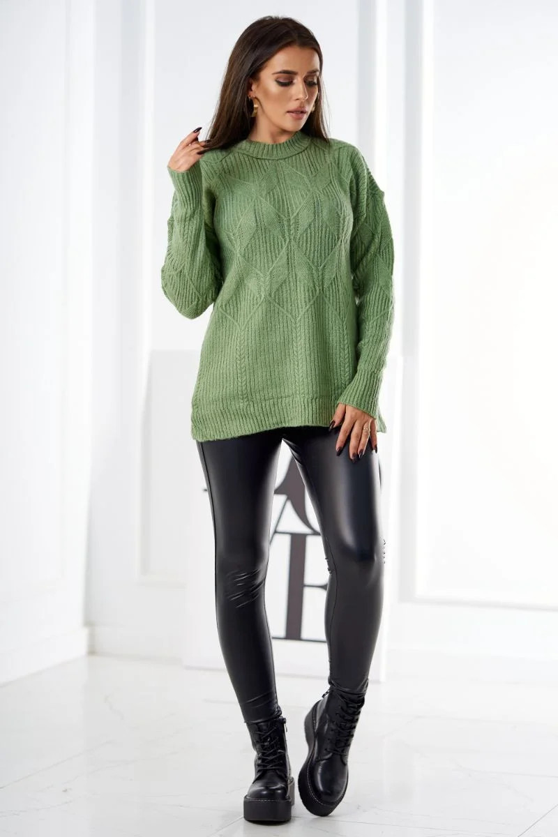 Svetr model 18970337 přes hlavu s módní vazbou tmavá máta - K-Fashion
