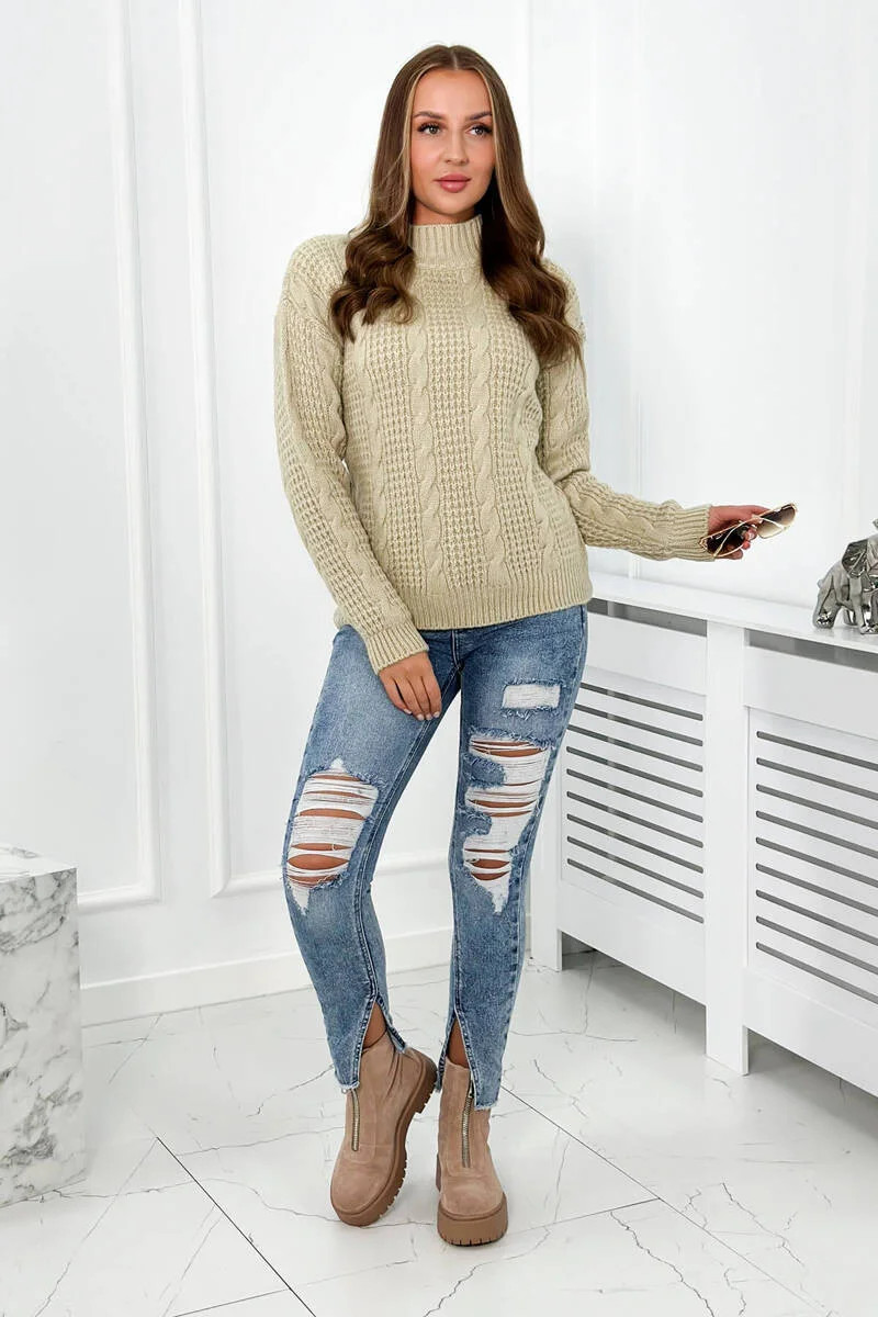 Svetr model 18966168 přes hlavu světle béžová - K-Fashion