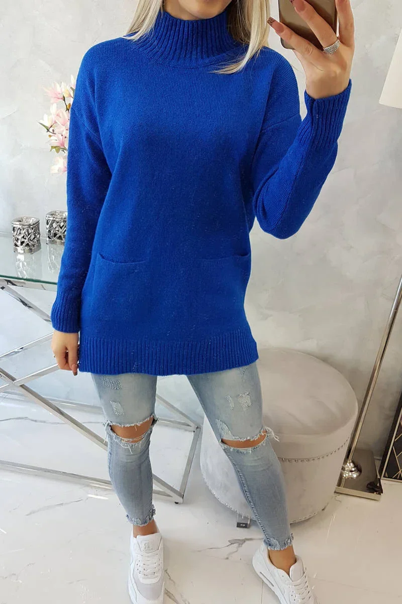 Představujeme vám módní svetr. Svetr má stojatý límec. Dvě kapsy na přední straně. Svetr nošený přes hlavu. Klasický střih ideální pro jakýkoli zimní vzhled. Hřejivé a příjemné na dotek. Svetr je vyroben z vysoce kvalitního materiálu. Velikost je univerzální a vyhovuje dámám ve velikostech M, L, XL.