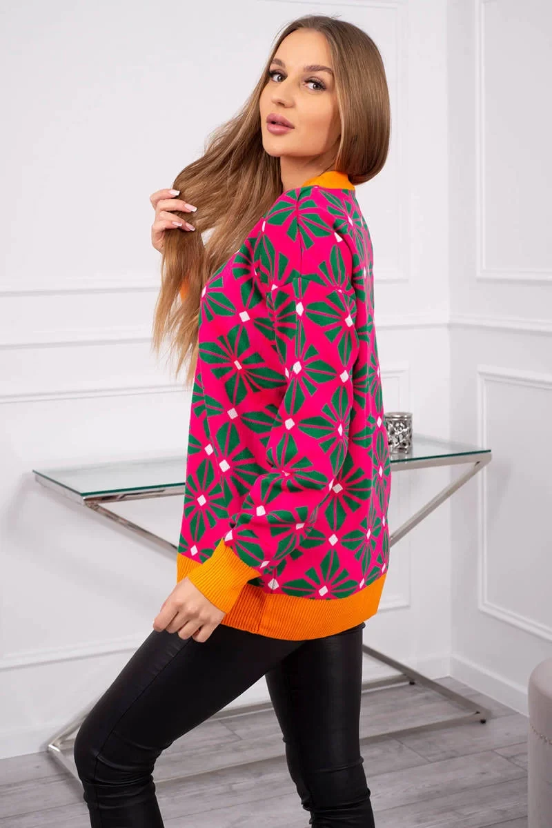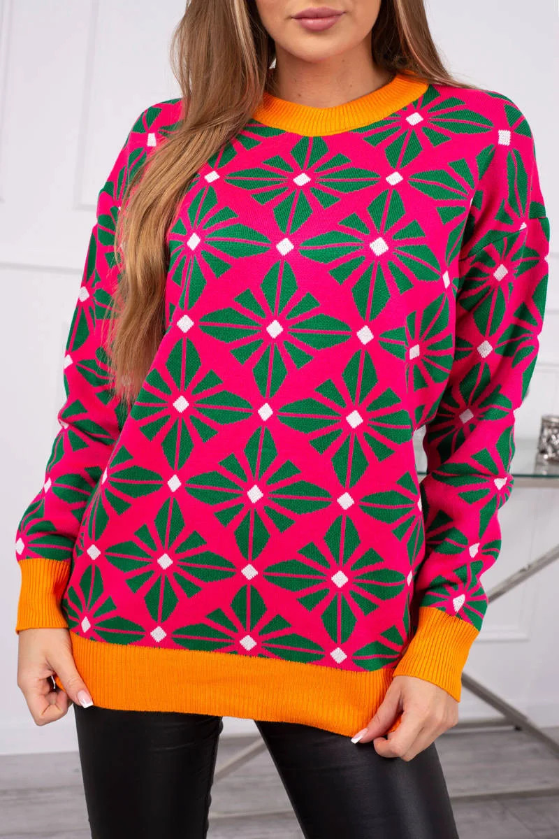 Svetr s geometrickým motivem fuchsiový