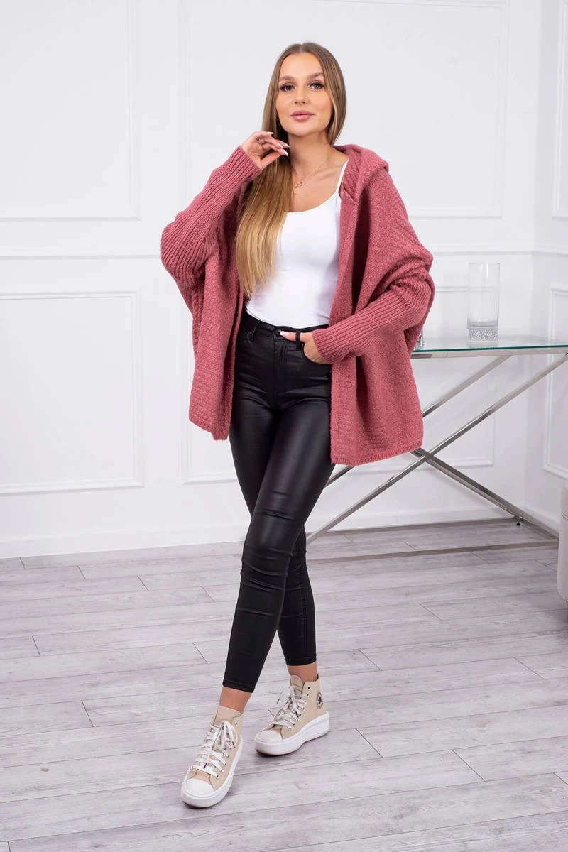 Svetr s kapucí a netopýřími rukávy tmavě růžový