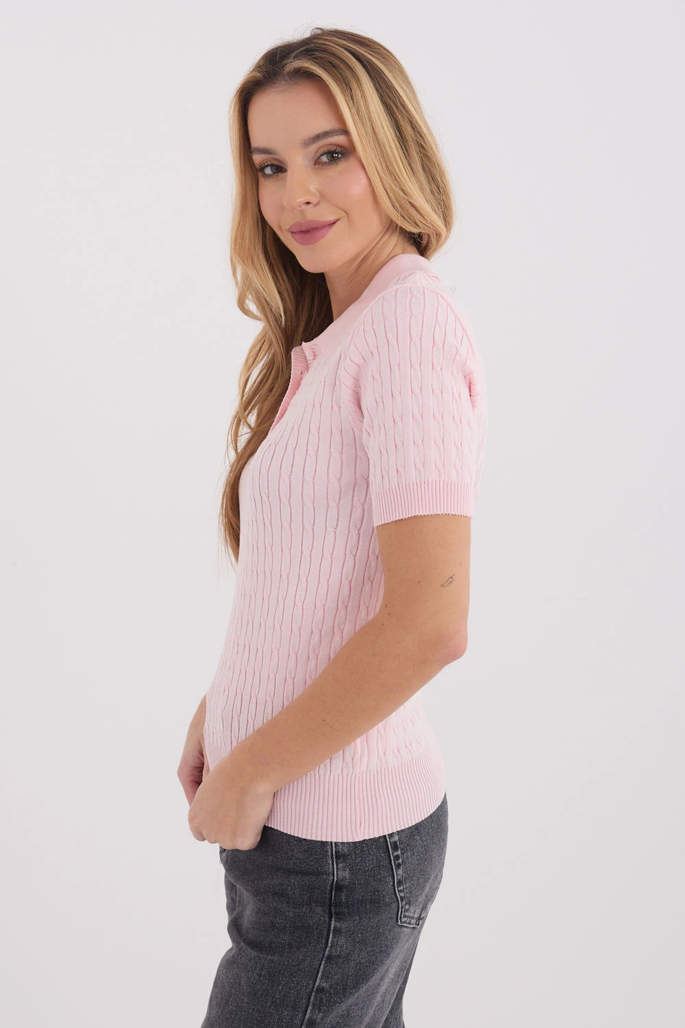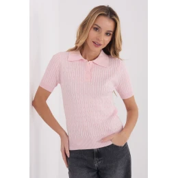 Elegantní dámský svetr s casual charakterem, ideální pro každodenní stylizace a do práce. Model se vyznačuje různorodou texturou materiálu, která dodává celku elegantní a zároveň moderní vzhled. Svetr je vyroben z kombinace viskózy a nylonu, díky čemuž je měkký, příjemný na dotek a odolný. Standardní délka činí střih univerzálním a snadno kombinovatelným jak s kalhotami, tak s sukní. Krátký rukáv dodává lehkost a dělá model ideálním pro teplejší dny nebo jako součást vrstveného stylu. Další výhodou je límeček a zapínání na polo knoflíky, které dávají svetru klasický, lehce sportovní charakter. To je skvělá volba pro ženy, které ocení pohodlí, funkčnost a nadčasový styl na každý den.