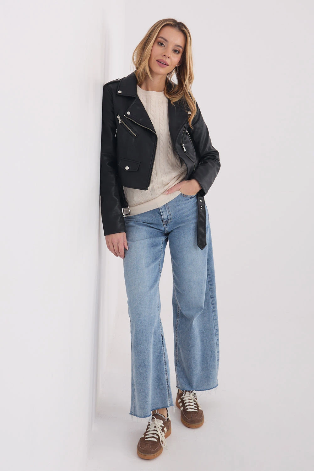Univerzální dámský svetr s ležérním charakterem, skvělý pro každodenní outfit a do práce. Model se vyznačuje různorodou texturou materiálu, která dodává celku jemnou eleganci a moderní vzhled. Svetr je vyroben z vysoce kvalitní směsi viskózy, polyesteru a polyamidu, díky čemuž je měkký, příjemný na dotek, odolný a pohodlný k nošení. Standardní délka z něj činí praktický střih, který lze snadno sladit s různými kousky šatníku. Krátký rukáv dodává lehkost a svetr se skvěle hodí jak samostatně, tak i ve vrstvených outfitcích. Model má kulatý výstřih, který zdůrazňuje klasický charakter a zajišťuje pohodlí. Bez zapínání je svetr jednoduchý ve formě a mimořádně univerzální, ideální pro ženy, které ocení pohodlí, funkčnost a nadčasový styl.