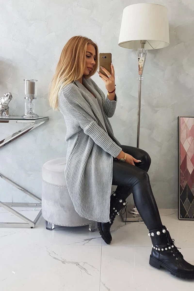 Svetr s netopýřími rukávy světle šedý