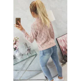 Svetr s polovičním rolákem a kosočtvercovým vzorem pudrově růžový