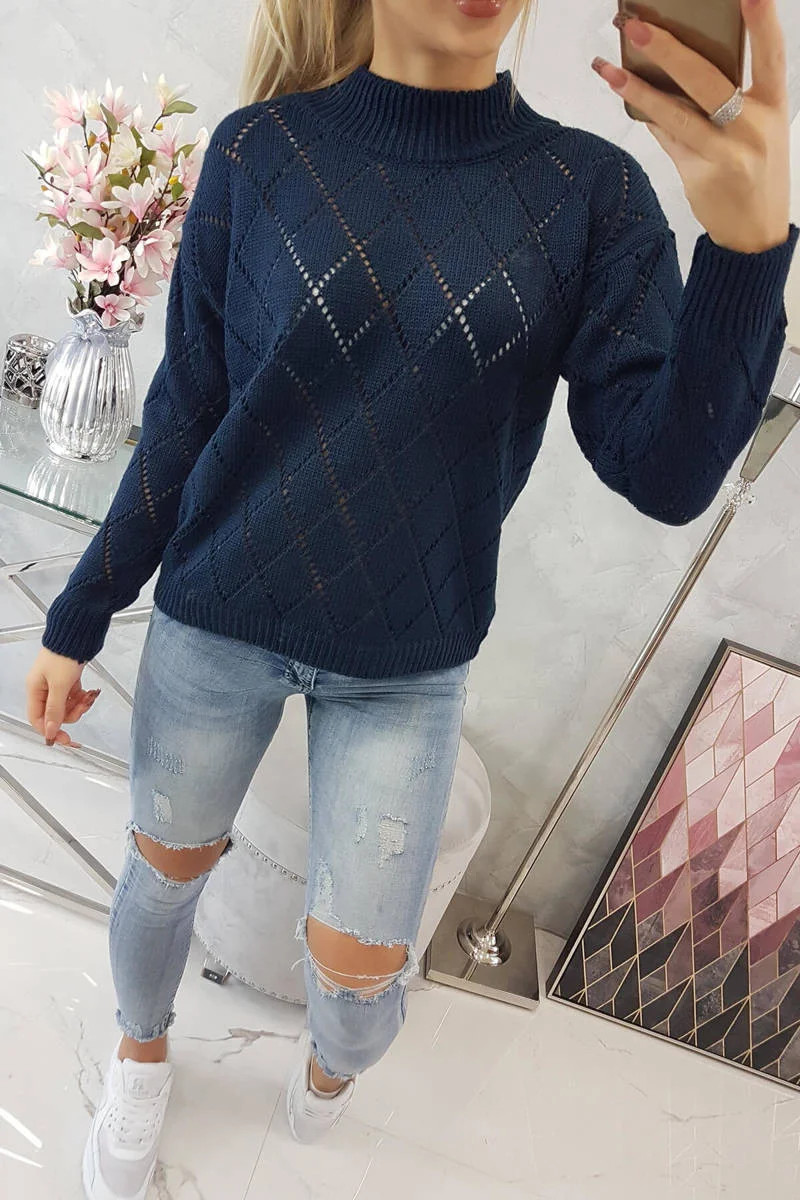 Svetr s polovičním rolákem a model 18745516 vzorem tmavě modrý - K-Fashion