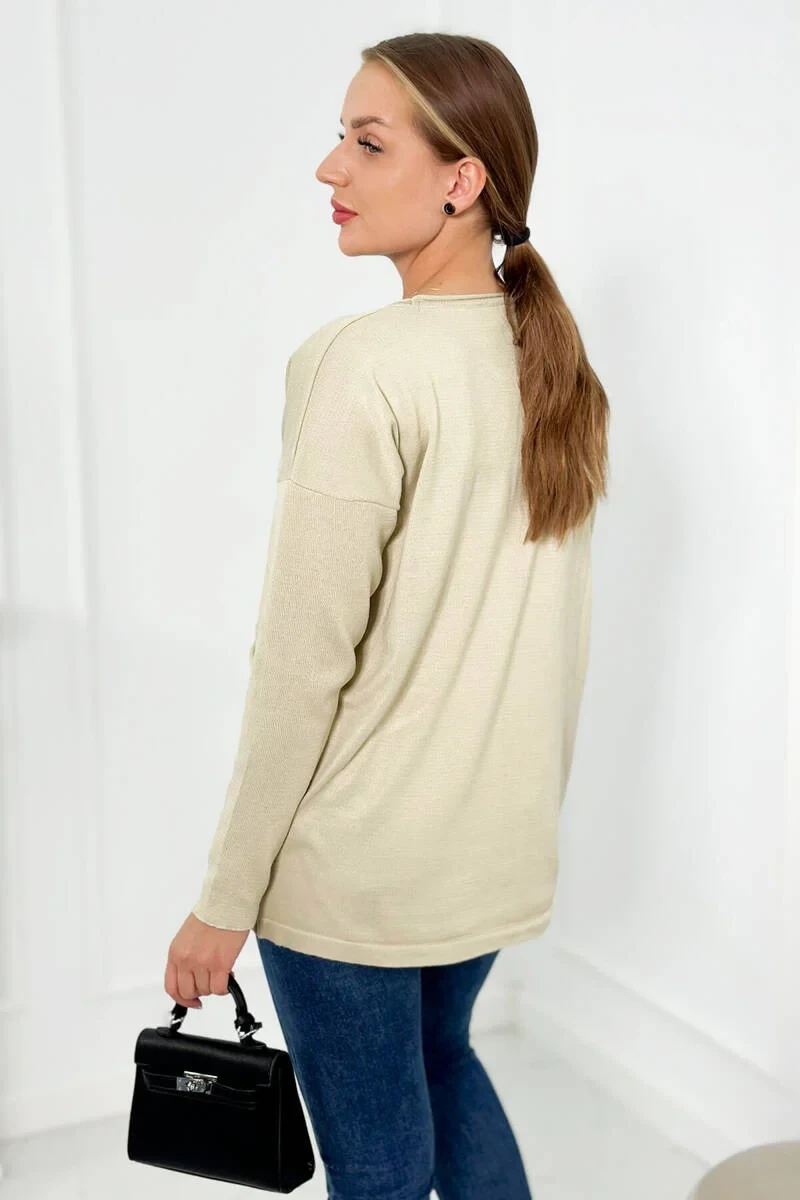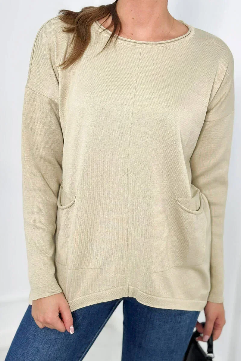 Svetr s předními kapsami je nejen hřejivý a praktický kousek oblečení, ale také stylový doplněk, který dodá charakter každému outfitu. Tento svetr vyrobený z měkkého materiálu zaručuje pohodlí při nošení a zároveň vypadá módně a moderně. Na přední straně svetru jsou praktické kapsy, které mu dodávají nejen trochu nonšalance, ale jsou také funkční pro každodenní použití. Umožňují schovat ruce v chladnějších dnech nebo uložit drobnosti. Svetr je perfektní jako prvek ležérního stylu, ideální k nošení k džínům nebo kalhotám v chladnějších dnech. Díky univerzálnímu designu se snadno hodí k různým sadám a vytváří ležérní i elegantnější vzhled. Tento svetr s přední kapsou, který je k dispozici v různých barvách a stylech, je nezbytnou součástí vašeho podzimního a zimního šatníku a kombinuje funkčnost s módním vzhledem. Velikost je univerzální a bude vhodná pro ženy velikosti S, M, L.
