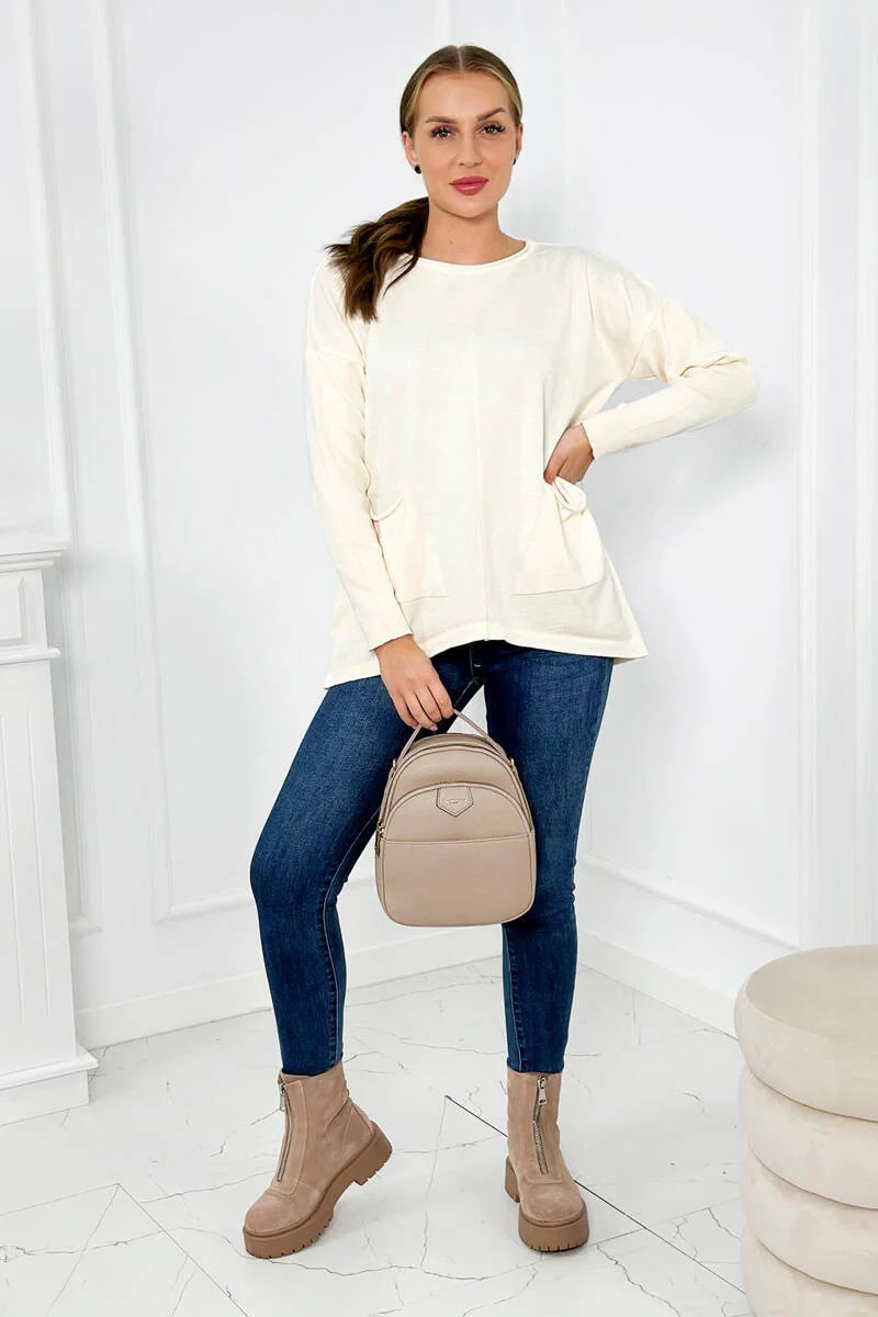 Svetr s předními kapsami je nejen hřejivý a praktický kousek oblečení, ale také stylový doplněk, který dodá charakter každému outfitu. Tento svetr vyrobený z měkkého materiálu zaručuje pohodlí při nošení a zároveň vypadá módně a moderně. Na přední straně svetru jsou praktické kapsy, které mu dodávají nejen trochu nonšalance, ale jsou také funkční pro každodenní použití. Umožňují schovat ruce v chladnějších dnech nebo uložit drobnosti. Svetr je perfektní jako prvek ležérního stylu, ideální k nošení k džínům nebo kalhotám v chladnějších dnech. Díky univerzálnímu designu se snadno hodí k různým sadám a vytváří ležérní i elegantnější vzhled. Tento svetr s přední kapsou, který je k dispozici v různých barvách a stylech, je nezbytnou součástí vašeho podzimního a zimního šatníku a kombinuje funkčnost s módním vzhledem. Velikost je univerzální a bude vhodná pro ženy velikosti S, M, L.