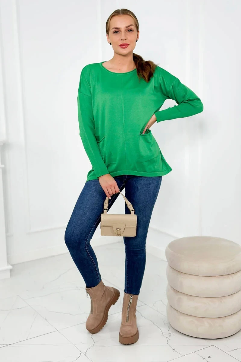 Svetr s předními kapsami jasně zelená