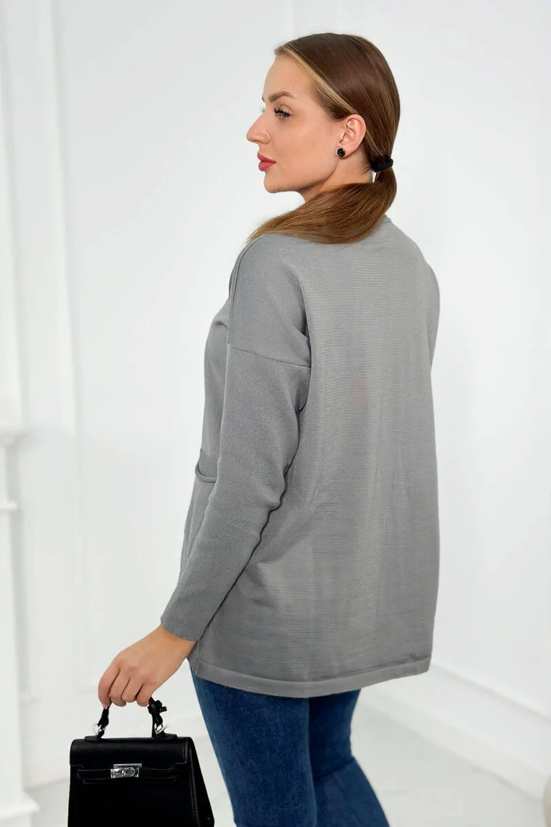 Svetr s předními kapsami šedý