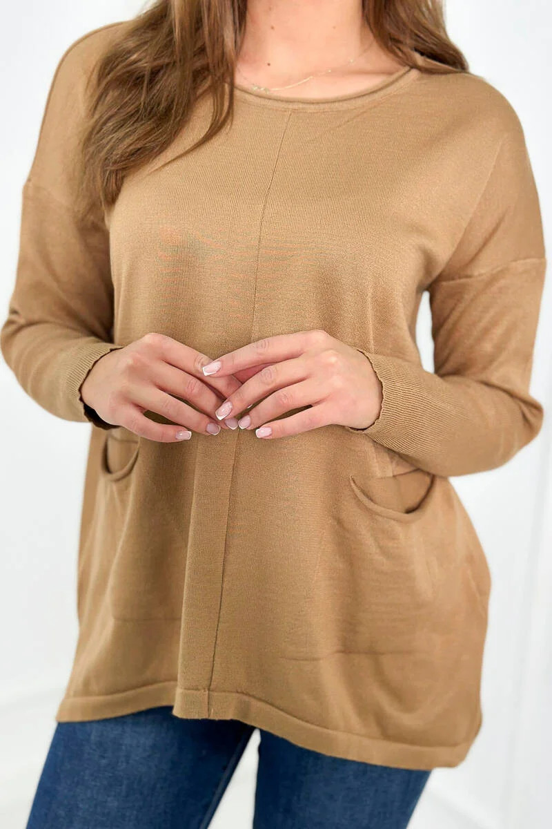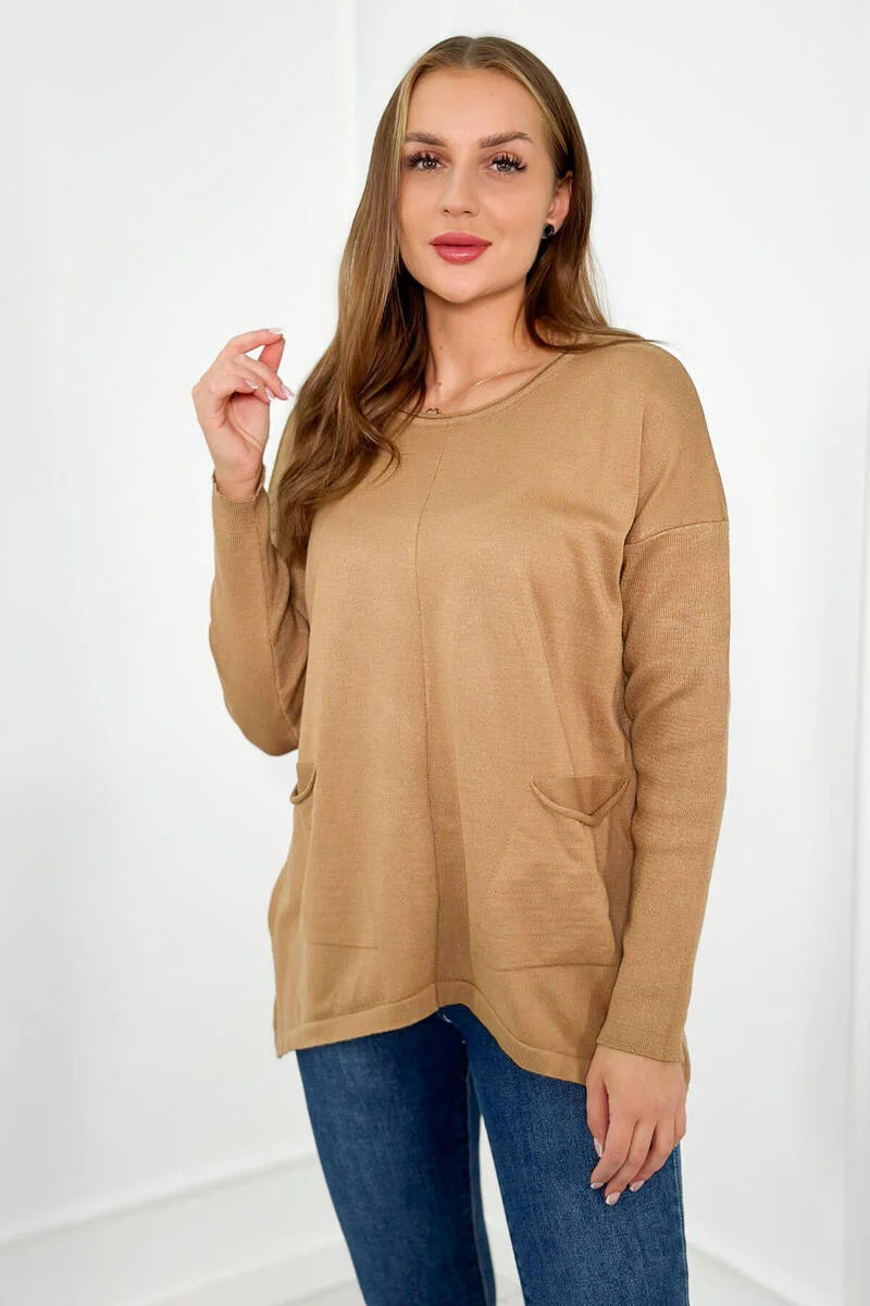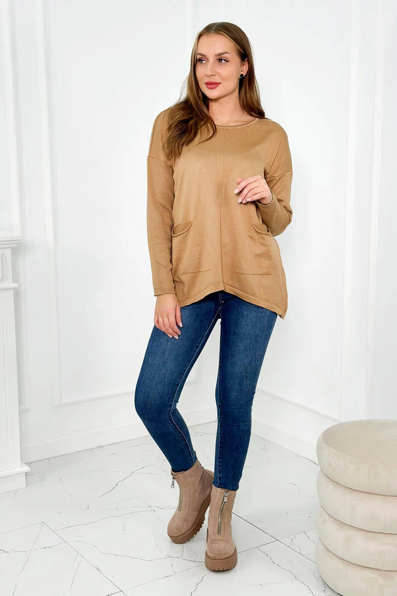 Svetr s předními kapsami Velbloud