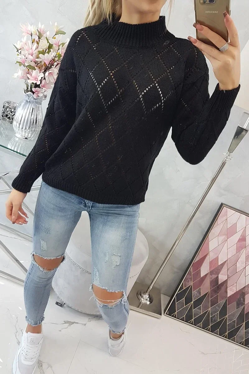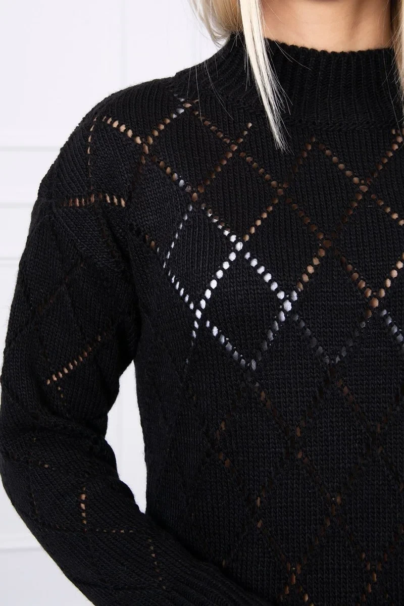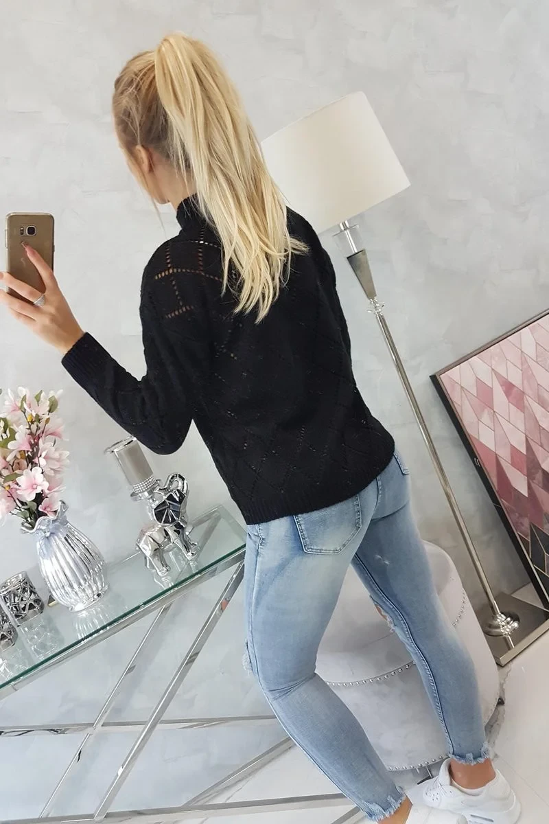 Svetr s rolákem a vzorem černý model 18745508 - K-Fashion
