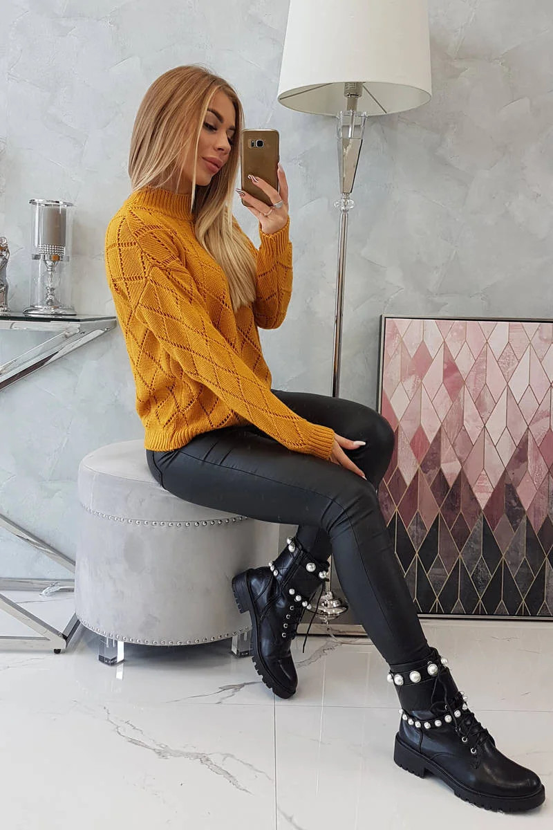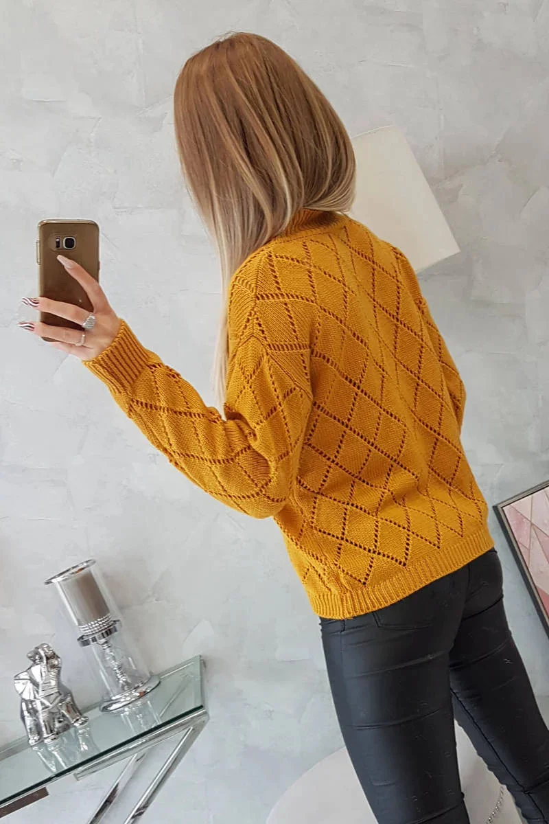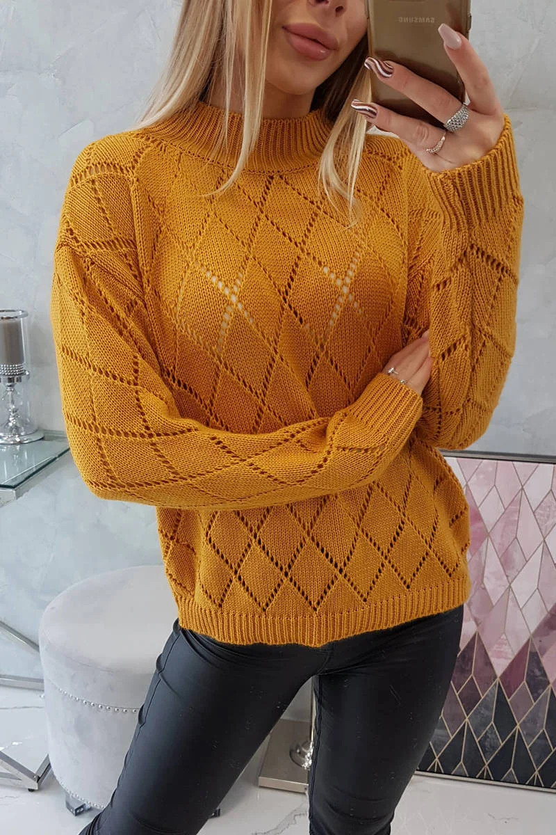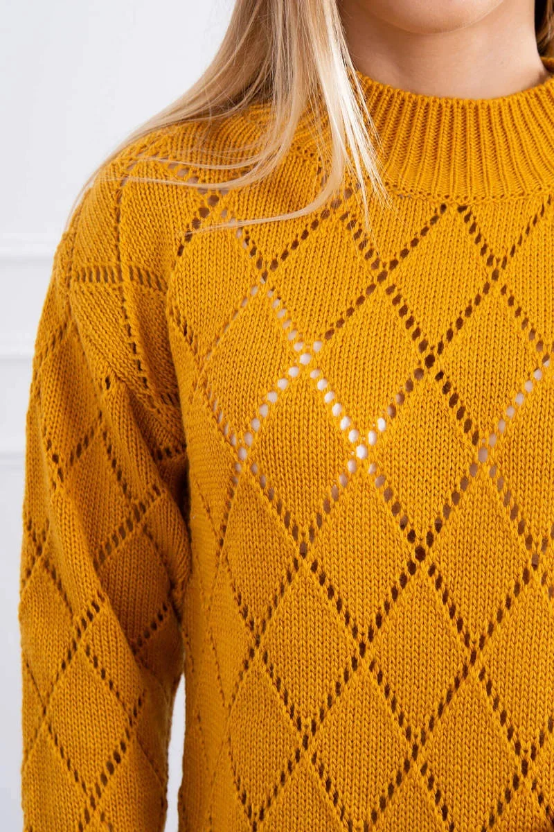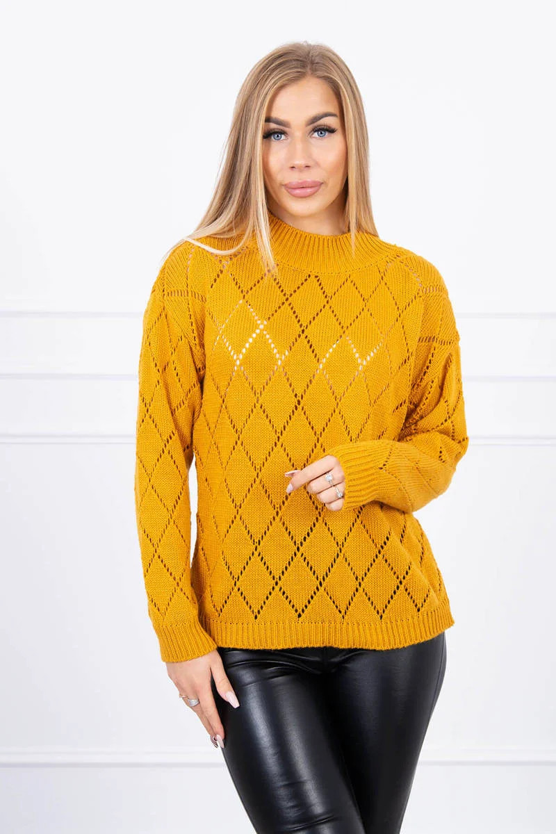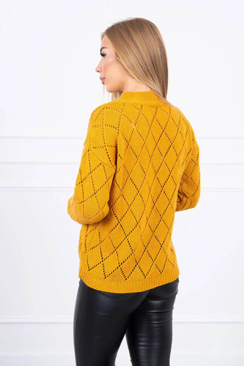 Svetr s rolákem a vzorem hořčicové barvy model 18745510 - K-Fashion