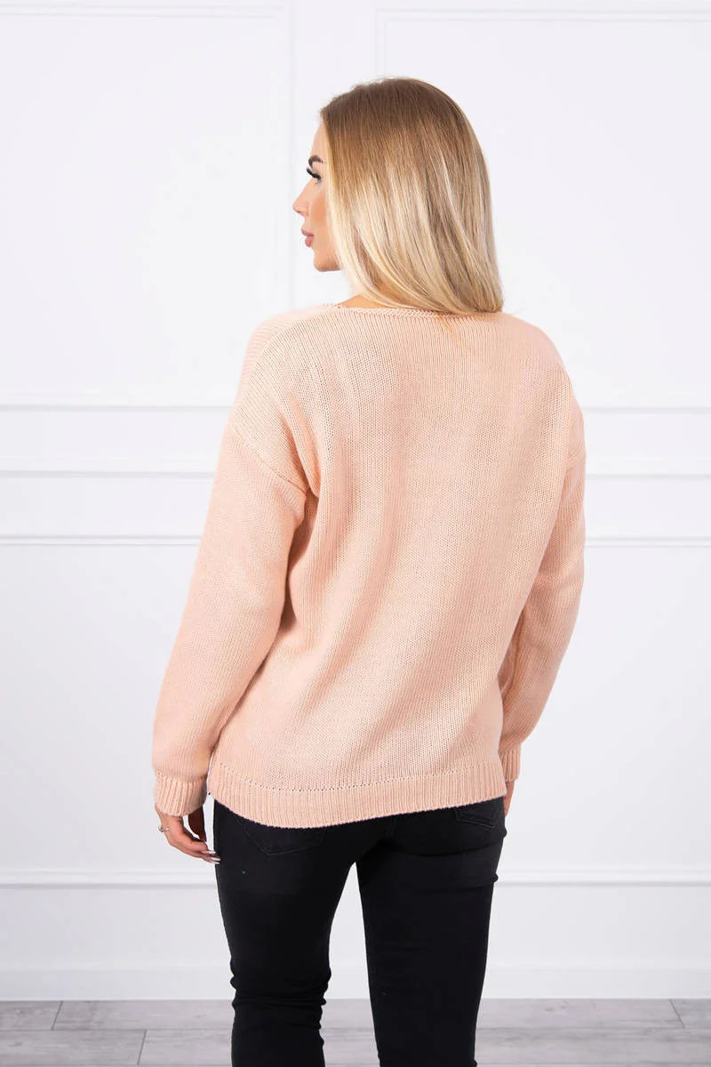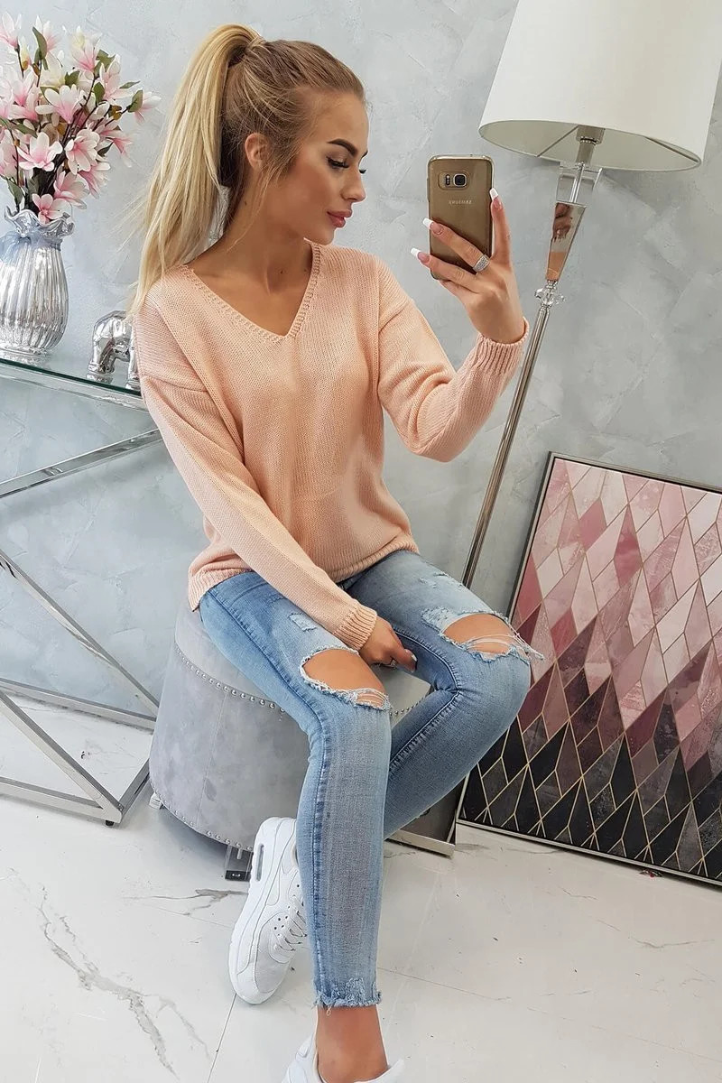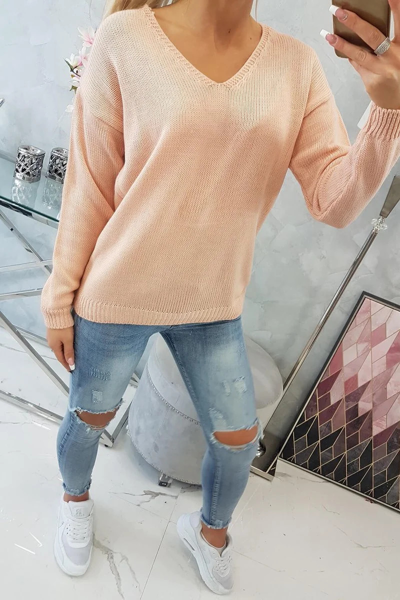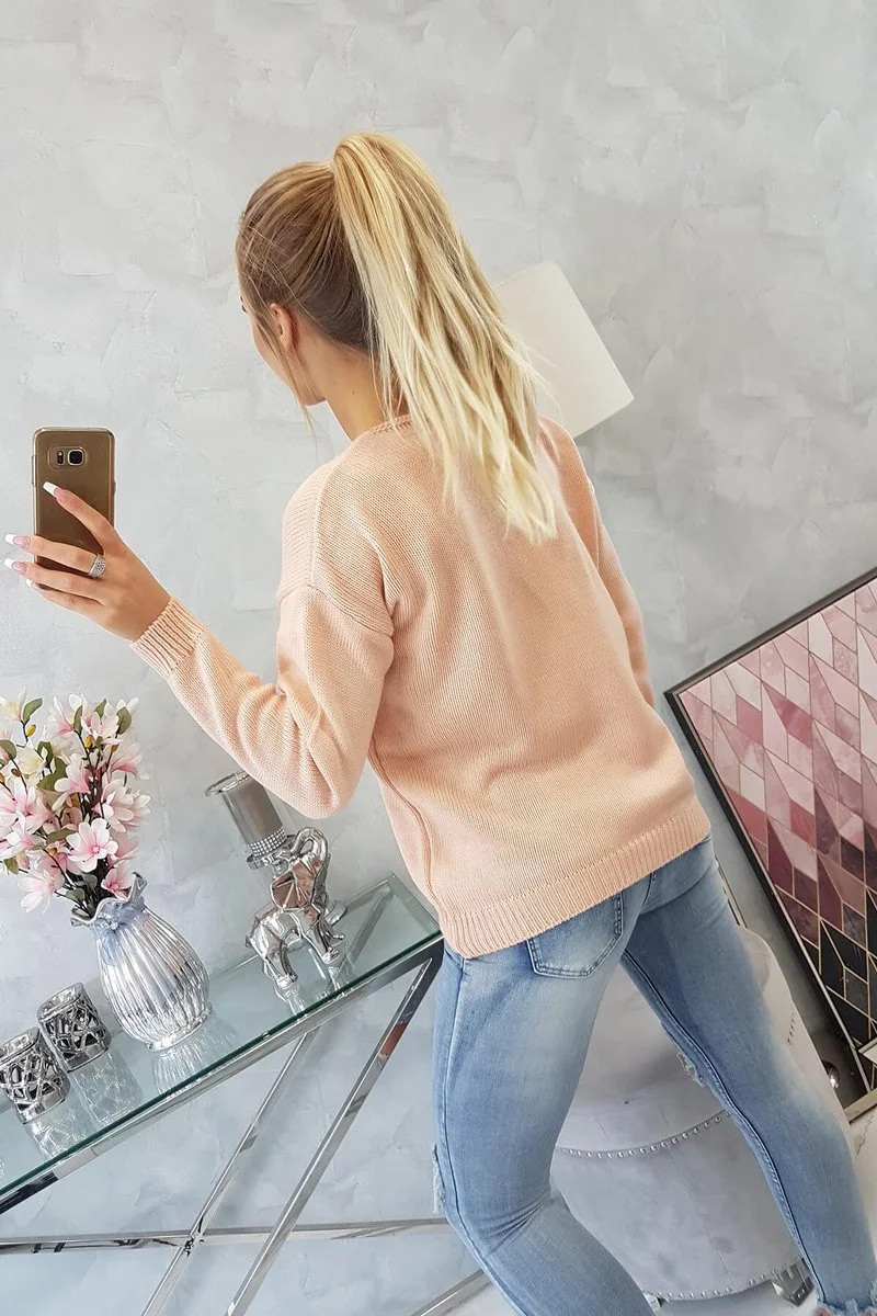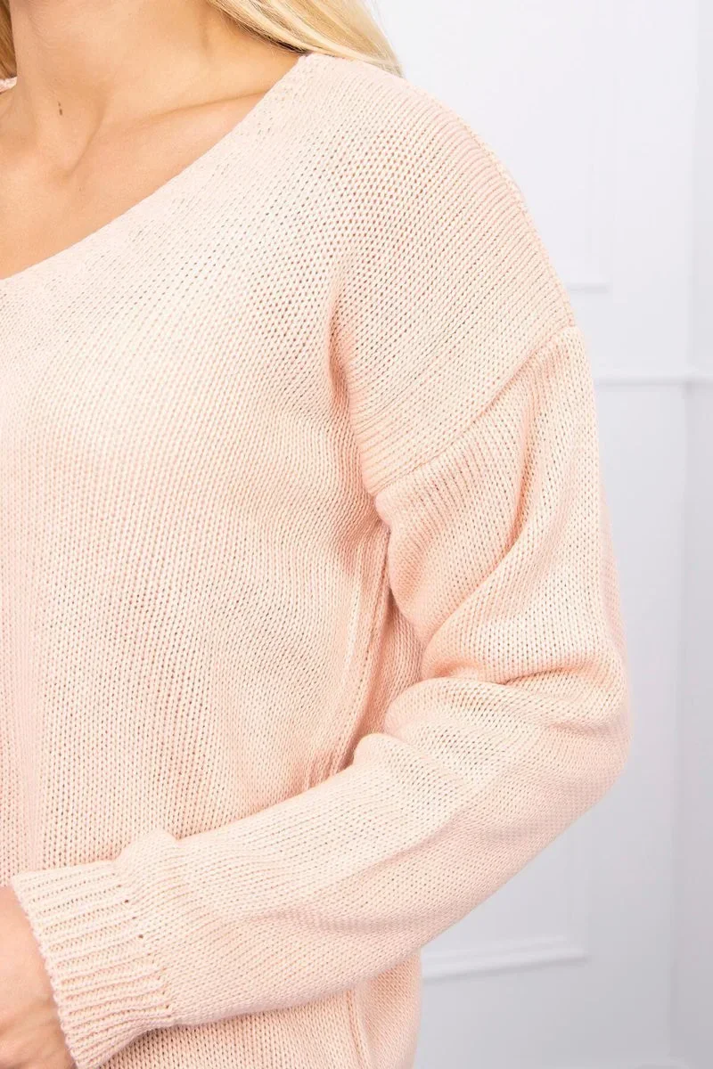Svetr s výstřihem do model 18745742 pudrově růžový - K-Fashion