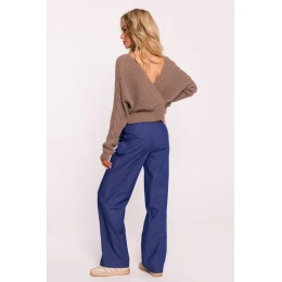 svetr s výstřihem do V cappuccino model 20476140 - Moe
