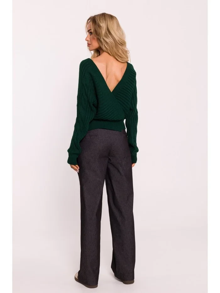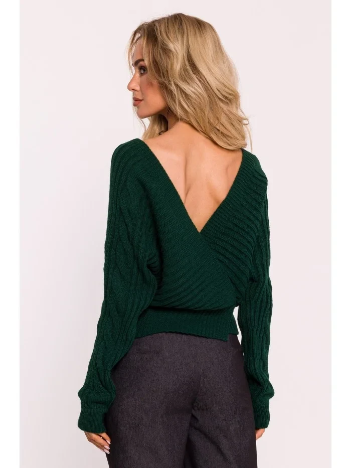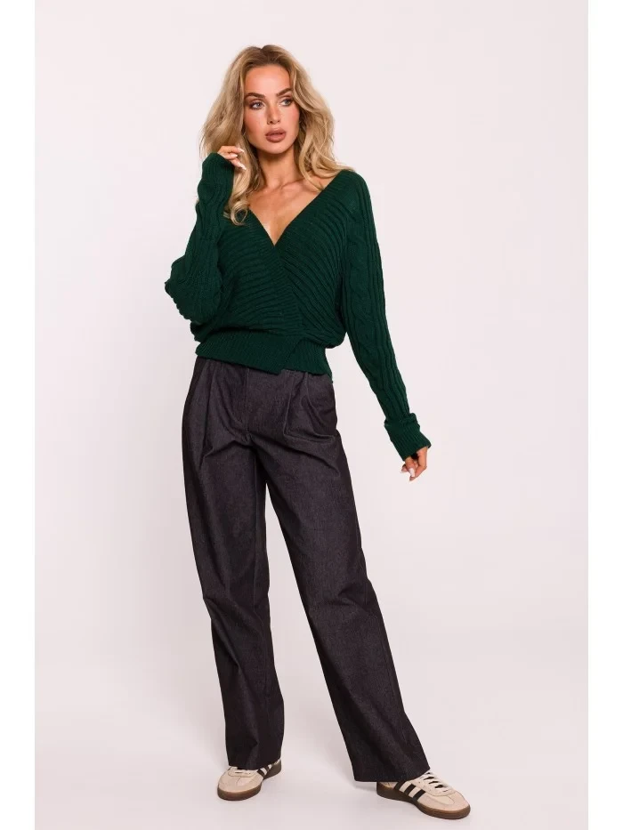 85% akryl 15% nylon INFORMACE O PRODUKTU: kabelový úplet oříznutý zavinovací svetr přiléhavý střih přetažený přes hlavu výstřih ve tvaru V vpředu a vzadu naše modelka je vysoká 171 cm a nosí velikost S navrženo a vyrobeno v Polsku
