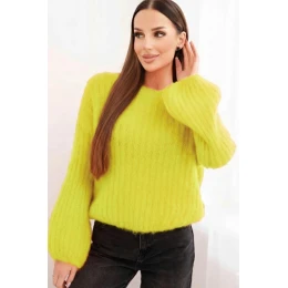Svetr z mohéru dámský s model 21778875 rukávy žlutý - K-Fashion