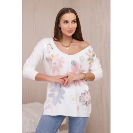 Svetrová halenka s barevnými květy model 19482512 - K-Fashion