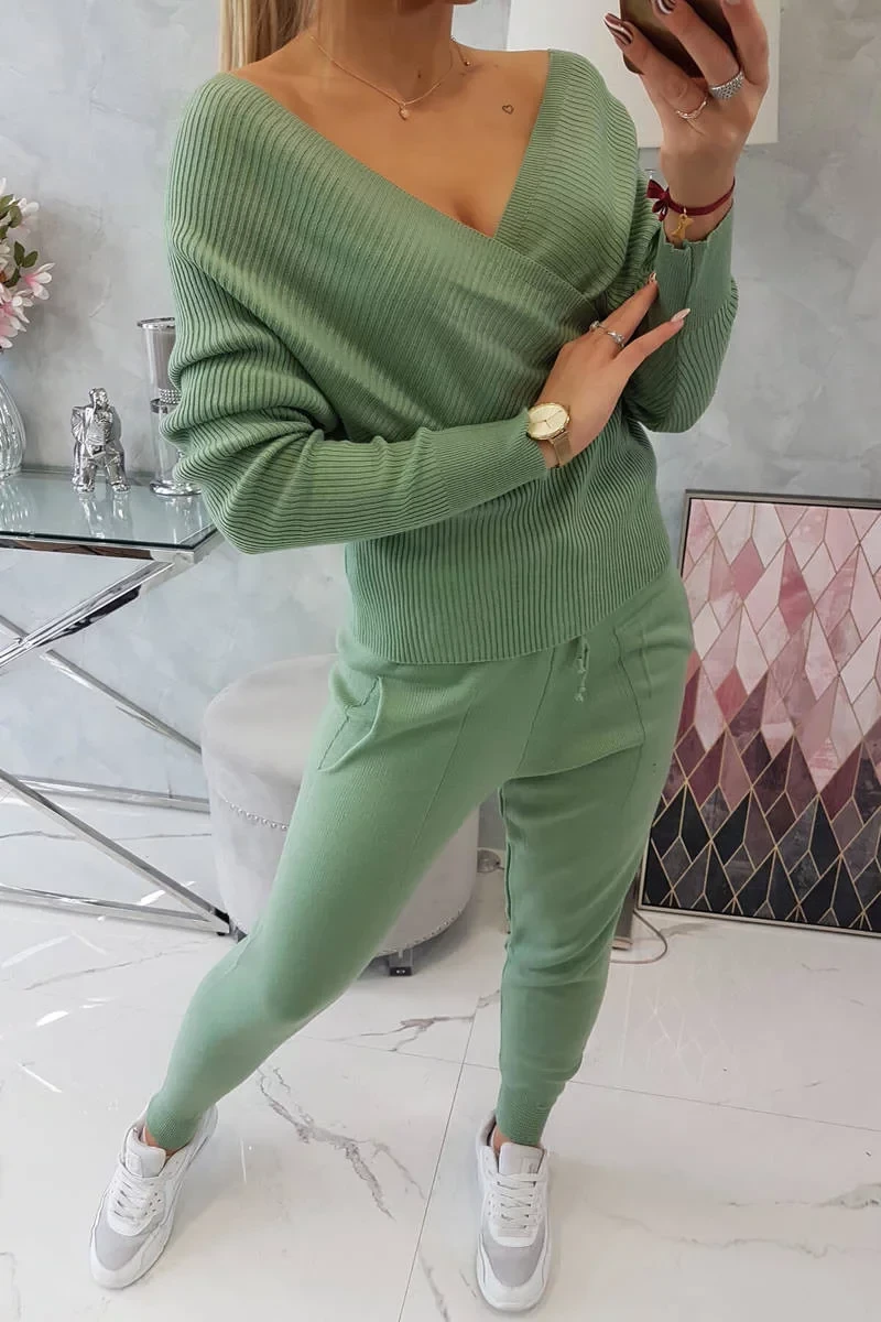 Dvoudílný svetrový set alpaka tmavě mátový
