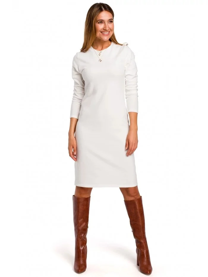 Svetrové šaty s dlouhým rukávem S178 krémové - Stylove