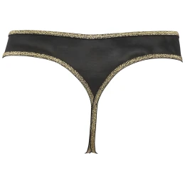 Nádherný a okouzlující set tang s podprsenkou V-10101 je extravagantní a svůdnou kombinací černých a zlatých ozdob pro vášnivý večerní zážitek. Model z černého příjemného tylu ve střední části, boky z květinové krajky. Na přední i zadní straně mají ozdobné obruče zlaté barvy, které spojují lesklé pásky. Navíc máš rozšiřující se klín se zlatými obručemi, takže nikdo nemůže spustit oči z tvého kulatého zadečku. Pohodlné a zároveň praktické díky vestavěnému bavlněnému klínu vpředu.