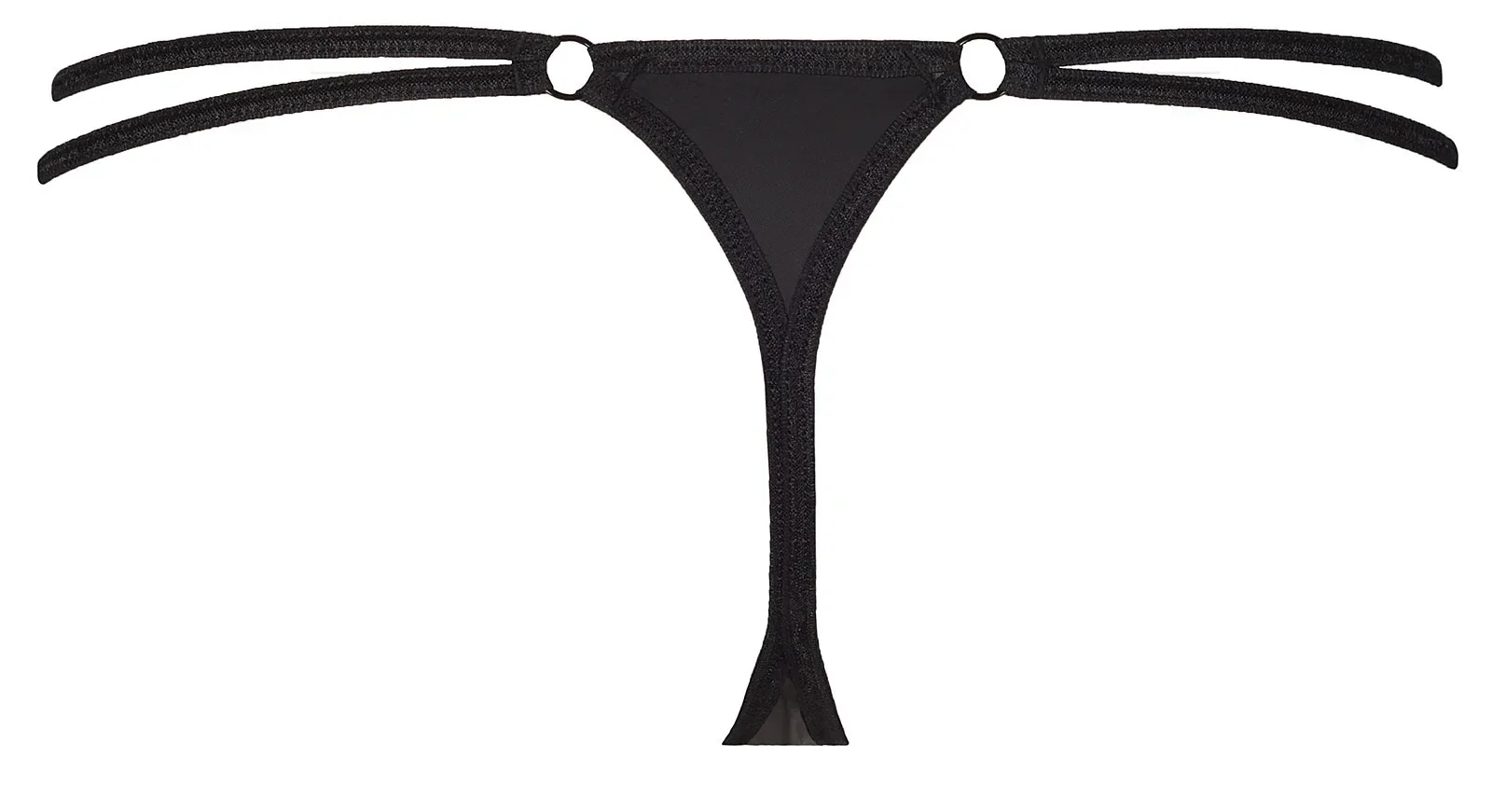 | Černé stringy se smyslným střihem V-8338 jsou vyrobeny z latexu s matnou povrchovou úpravou. Hedvábně černá barva zdůrazní hebkost vaší pokožky. Celá sada stringů a podprsenky V-8331 je skutečným potěšením pro smysly.