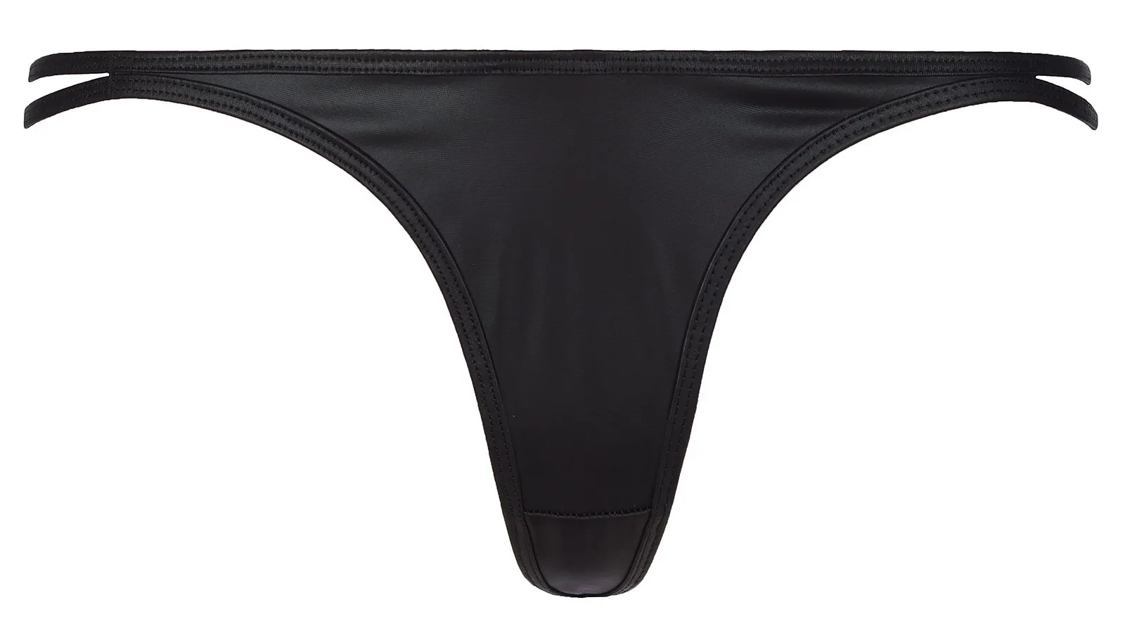 | Černé stringy se smyslným střihem V-8348 jsou vyrobeny z latexu s matnou povrchovou úpravou. Hedvábně černá barva zdůrazní hebkost vaší pokožky. Celá sada stringů a podprsenky V-8341 je skutečným potěšením pro smysly.