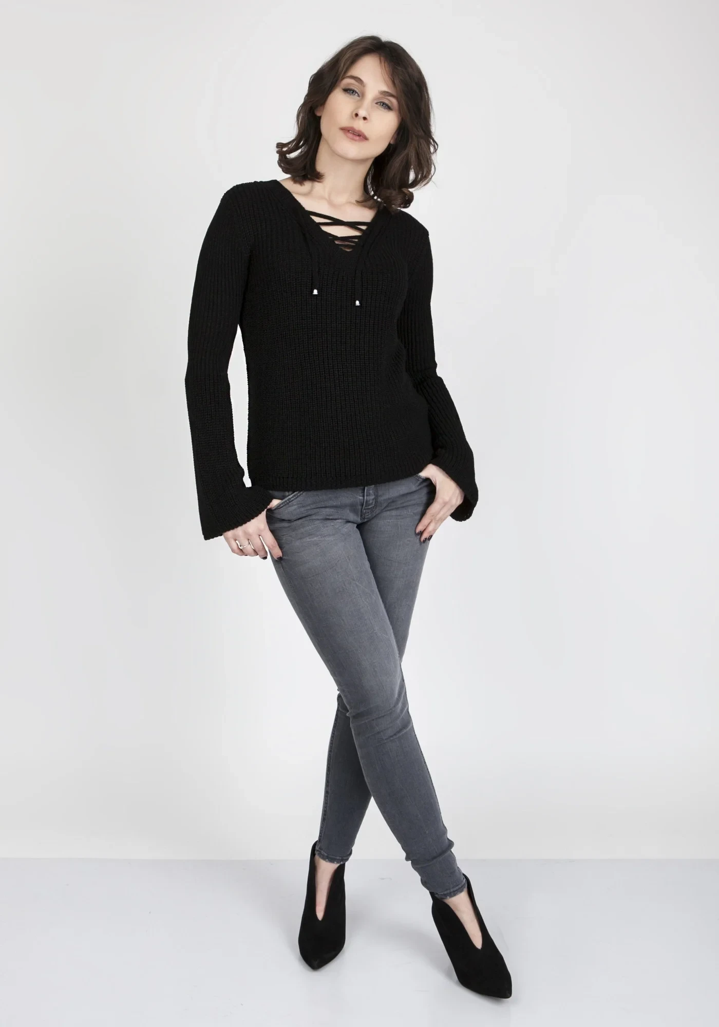 Mimořádně módní svetr se šněrováním ve výstřihu. V krásné, velmi ženské barvě. Výstřih do V je jedním z nejlépe tvarovaných střihů, ve kterém budete vždy vypadat krásně. Jemná příze nekouše, ale potěší svou výjimečnou měkkostí. Rukávy jsou mírně rozšířené. Skvělá módní nabídka. Složení: 55 % viskóza, 45 % akryl.