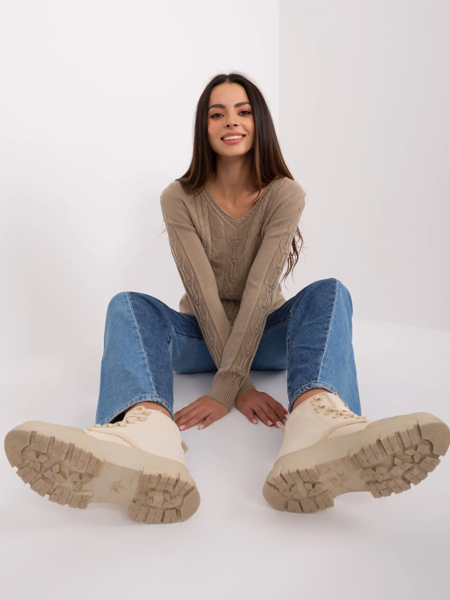 Sweter AT SW model 18900716 ciemny bezowy - FPrice