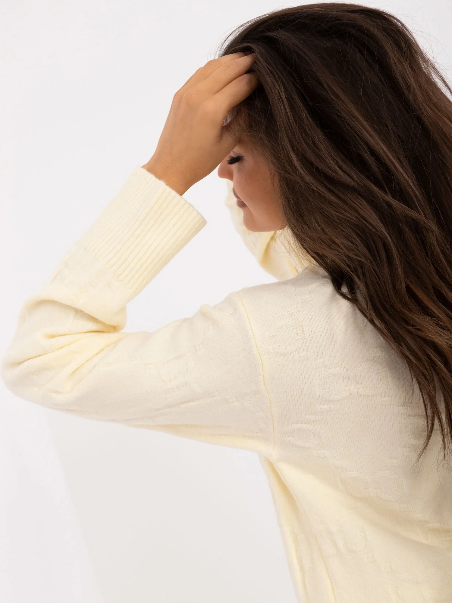 Wymiary swetra w rozmiarze one size mierzone na płasko: szerokość pod pachami - 60 cm, długość rękawa - 65 cm, długość całkowita - 67 cm.