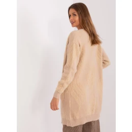 Wymiary kardiganu w rozmiarze one size mierzone na płasko: szerokość pod pachami - 65 cm, długość całkowita - 87 cm, długość rękawa - 60 cm.