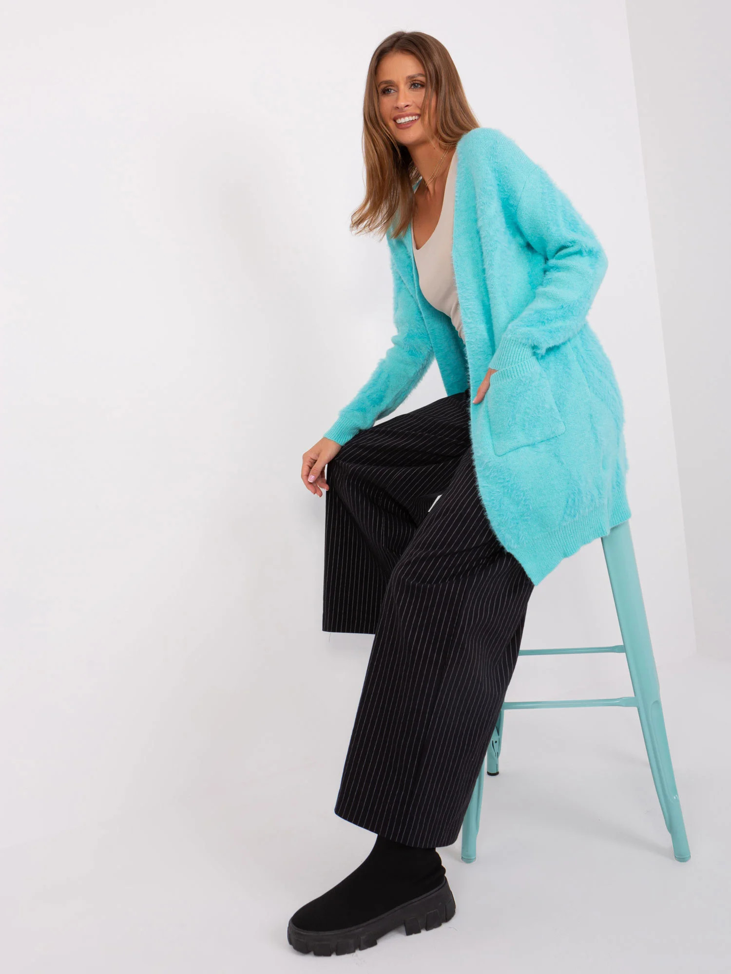 Wymiary kardiganu w rozmiarze one size mierzone na płasko: szerokość pod pachami - 65 cm, długość całkowita - 87 cm, długość rękawa - 60 cm.