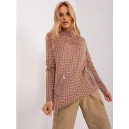 Brązowo-camelowy wzorzysty sweter z golfem.