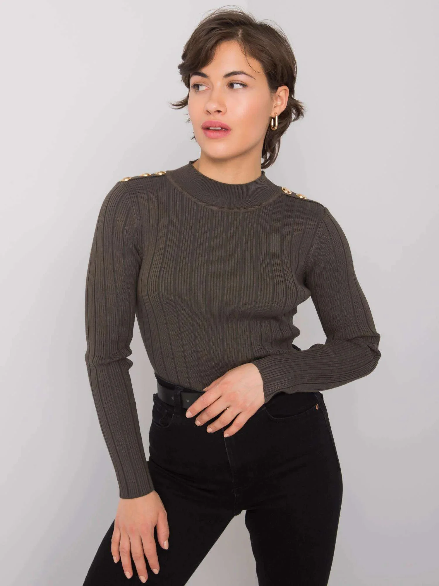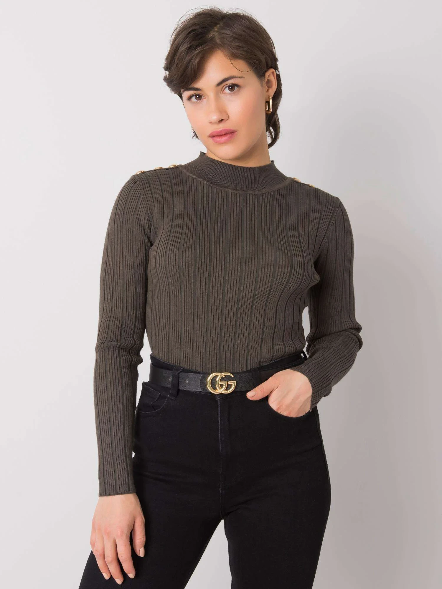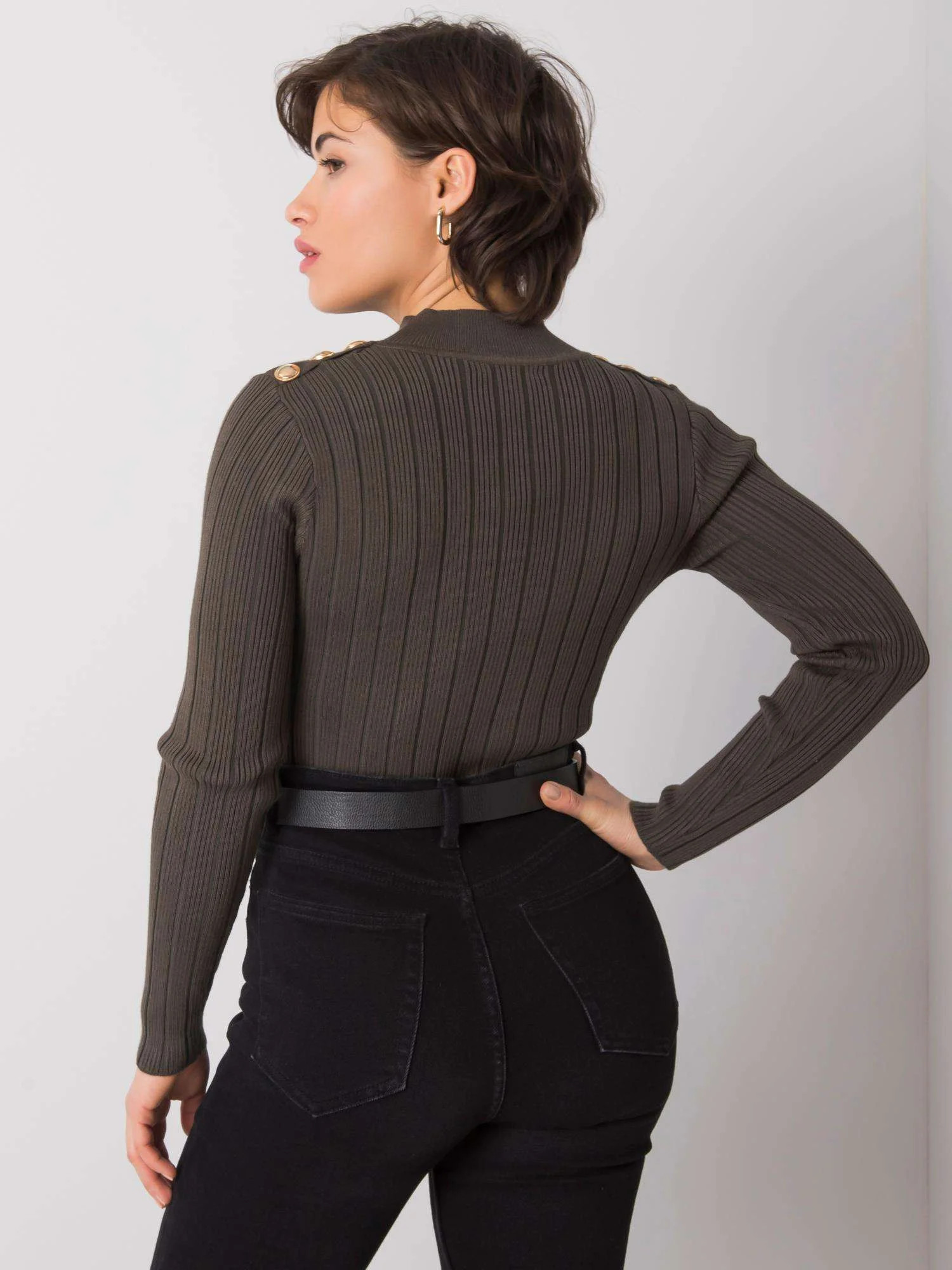 Khaki sweter damski w prążki.