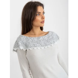 Beżowo-szara krótka bluzka z odkrytymi ramionami .