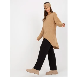 Camelowy sweter oversize z dłuższym tyłem OCH BELLA .