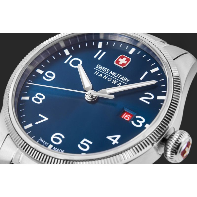 Zegarek SWISS MILITARY HANOWA to szwajcarska precyzja stworzona z myślą o mężczyznach, którzy wiedzą, czego chcą – i nie godzą się na nic mniej niż doskonałość. Mechanizm SWISS Made to nie jest tylko napęd wskazówek – to symbol zegarmistrzowskiej tradycji, która łączy technologię z kunsztem. Wyposażonywmechanizm Ronda 515 Swiss Made oferuje dokładność, której możesz zaufać w każdej sytuacji – od spotkań biznesowych po wyprawy w teren. Szafirowe szkło, mocna koperta i dobrze wyważona stalowa bransoleta z czterostopniowym zapięciem tworzą konstrukcję na lata - do garnituru, ale i do codziennych wyzwań. Dzięki wodoszczelności na poziomie 10 BAR (ATM) oraz zakręcanemu deklowi, zegarek jest odpowiednio zabezpieczony przed wodą i innymi czynnikami zewnętrznymi, co czyni go niezawodnym towarzyszem także w bardziej wymagających warunkach. Granatowa tarcza przyciąga uwagę elegancką grą światła, która zmienia się w zależności od kąta patrzenia — nadając zega