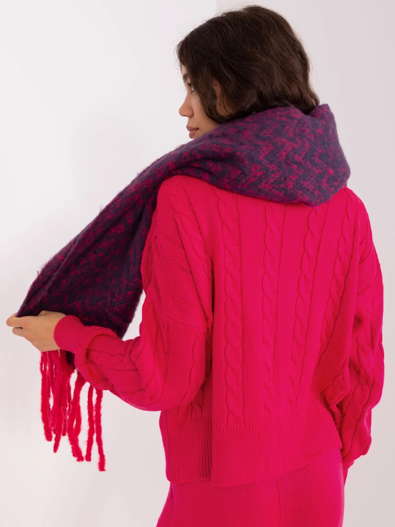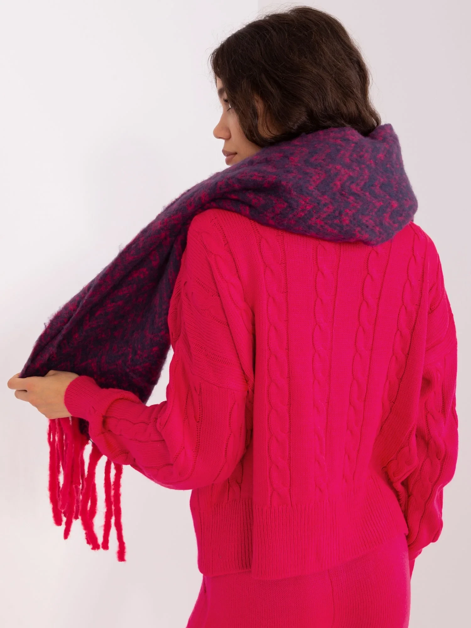 Granatowo-różowy damski szal we wzory .