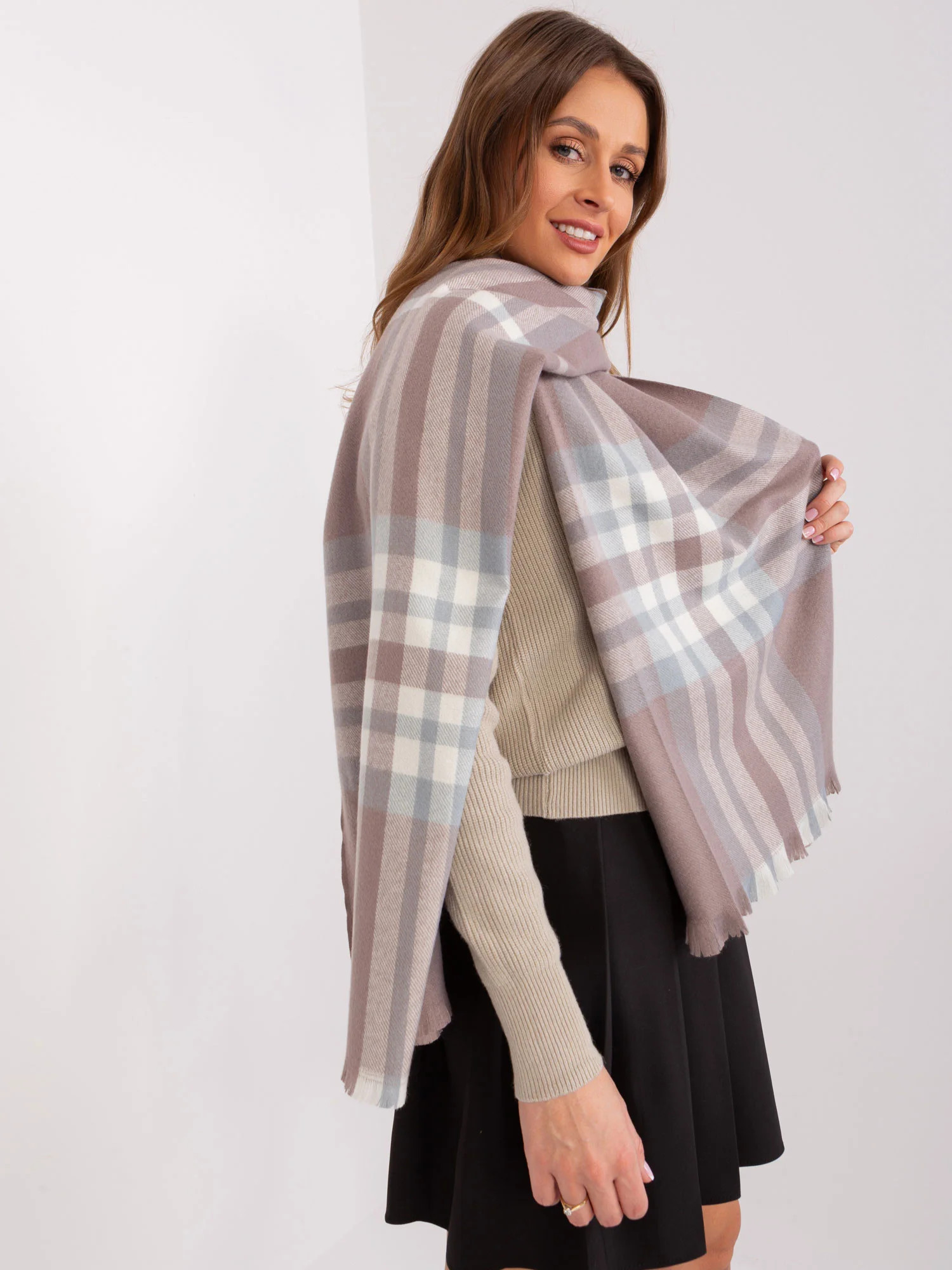 Wymiary szalika: szerokość - 67 cm, długość - ok. 190 cm