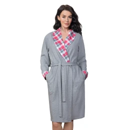 Dámský župan s šálovým límcem ušitý z bavlny, Dlouhý rukáv, zavazování v pase.